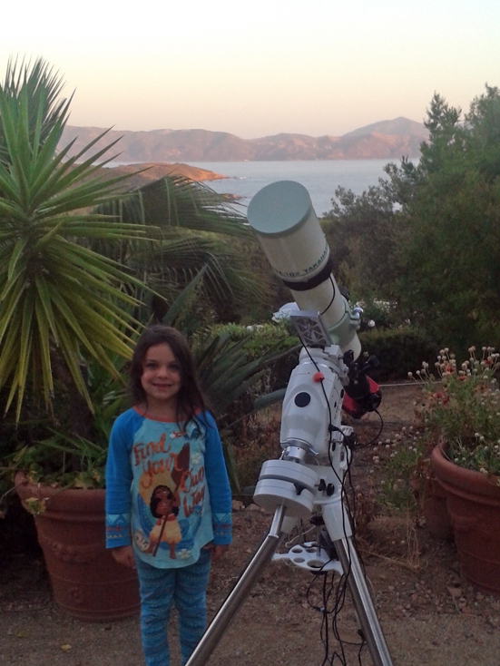 Avec mon AAA (Astronome Amateur Assistante ;)) de 4 ans et demi, déjà très intéressée pour jeter un œil à l'oculaire et regarder les images de la CCD s'afficher ! Quelques permissions de minuit ont été accordées ! :be: