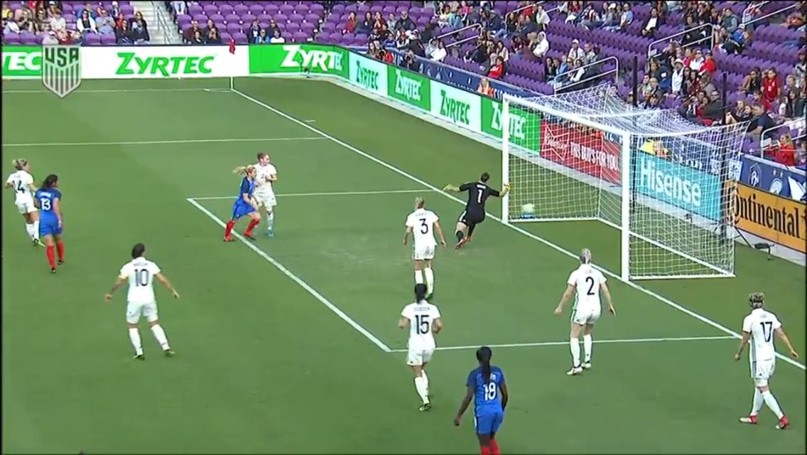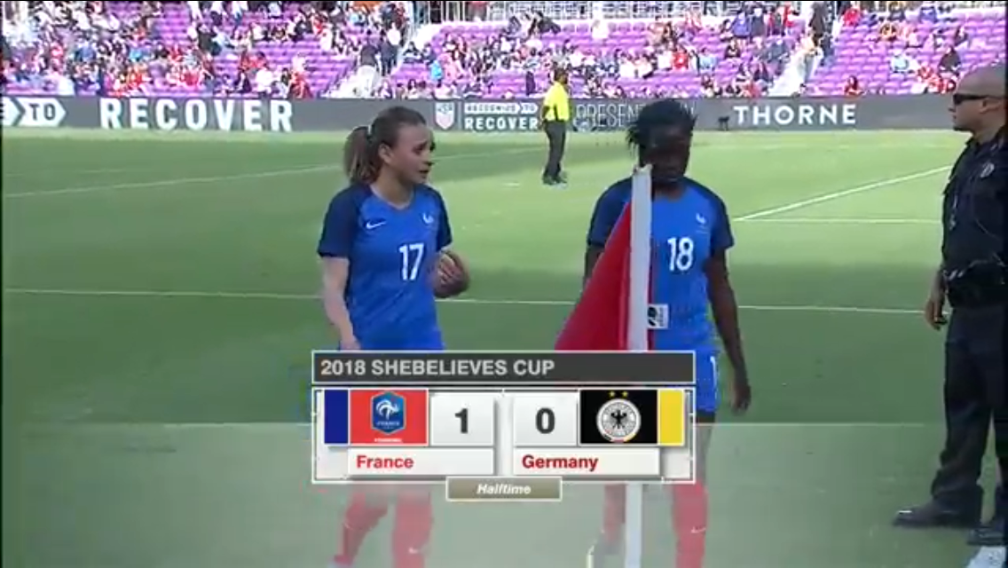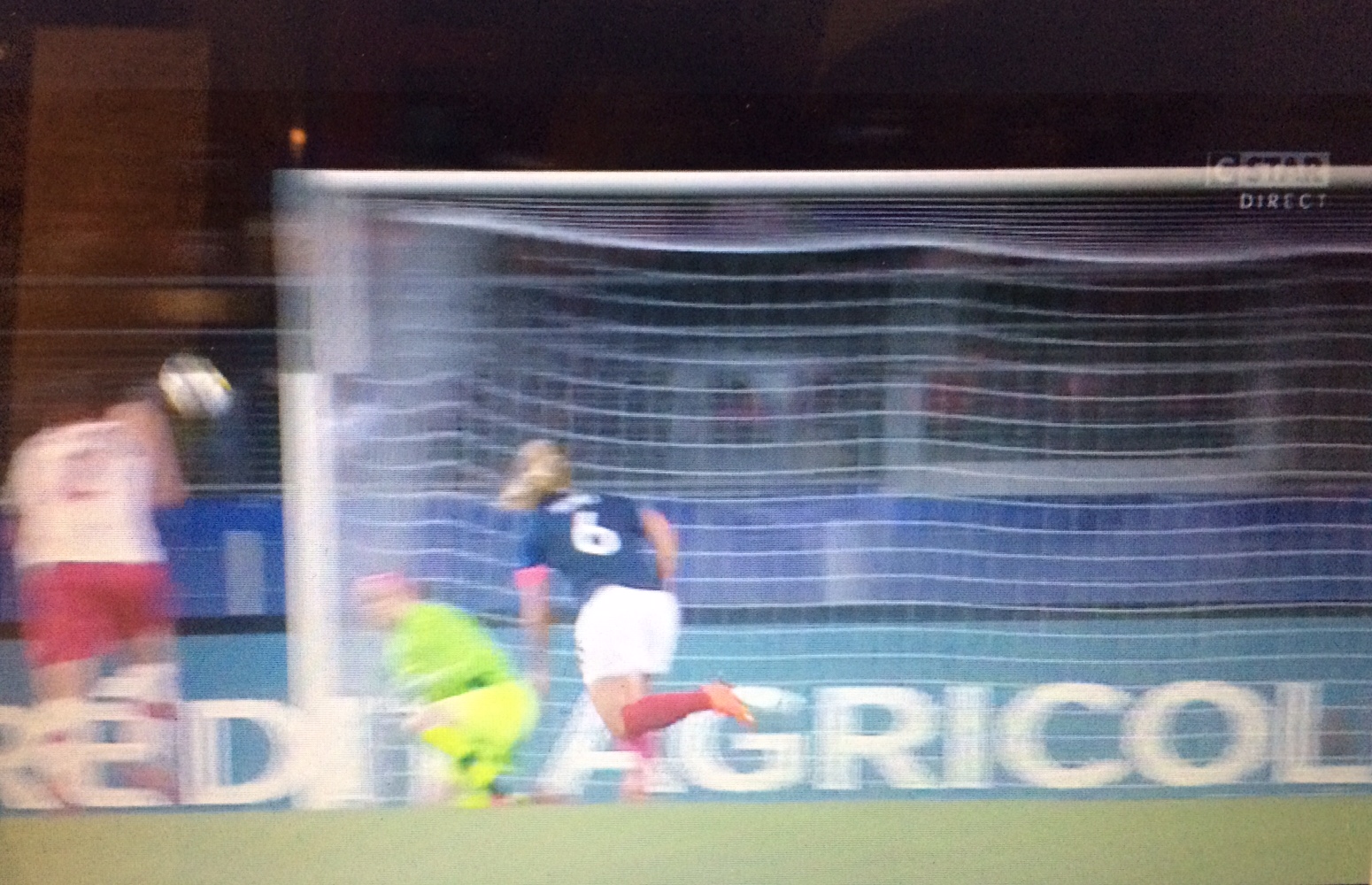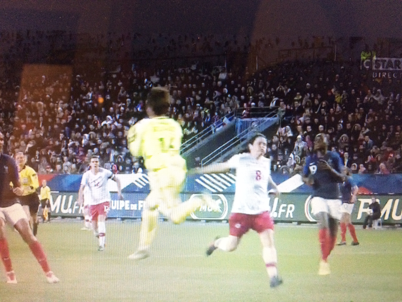 Mais je n'ai pas raté le superbe centre venu de la droite que Marion Torrent a adressé au deuxième poteau pile sur la tête de Eugénie Le Sommer qui ne s'est pas faite prier pour marquer en mode vigoureux. Faut dire qu'elle râlait pas mal en première mi-temps de ne pas recevoir beaucoup de ballons.