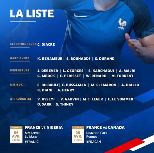 On nous dit qu’Amandine Henry bien que revenant de blessure sera sur le terrain.