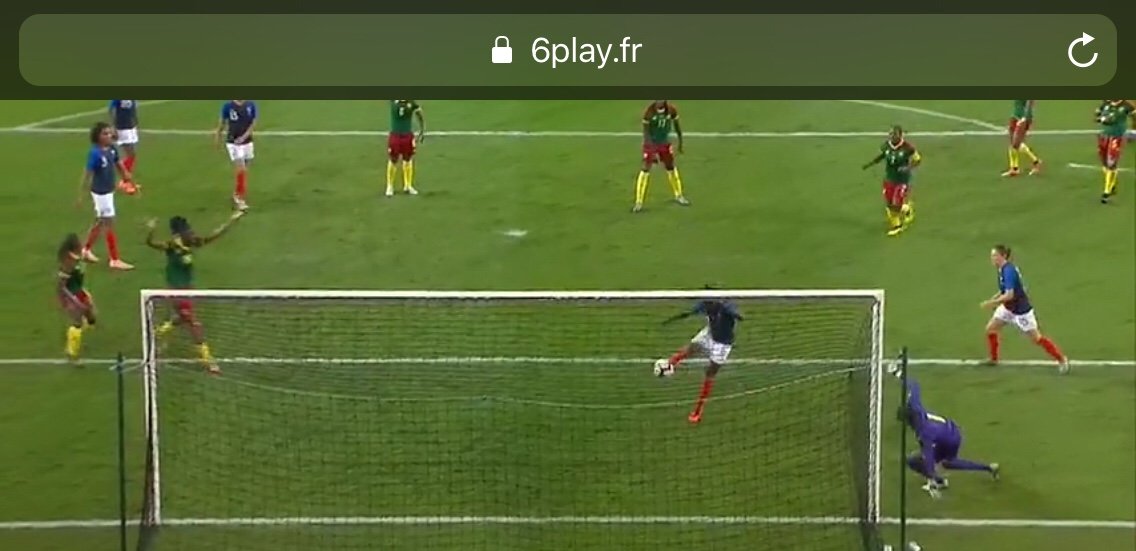 Menées désormais 5-0, les Camerounaises aimeraient sauver l'honneur en allant en marquer un elles-aussi et Sarah a dû intervenir mais cela crée surtout de sérieux espaces dans le camp camerounais et nos filles s'en donnent à coeur joie.