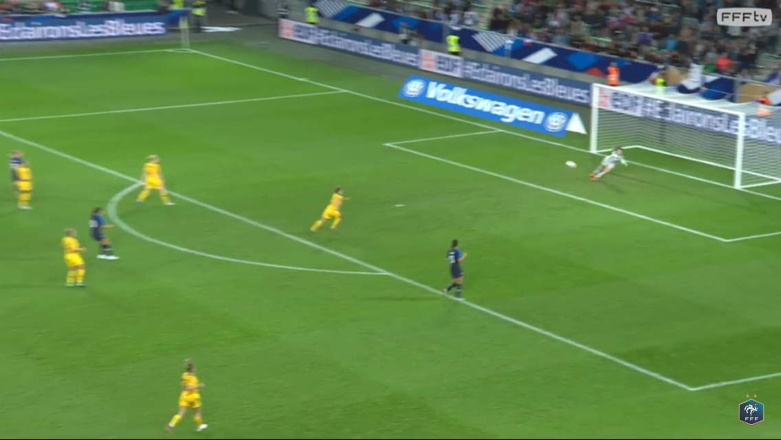 Ah voici Elise Bussaglia qui joue au billard avec la gardienne sur coup-franc lointain de la droite :)  :cheer: 2-0