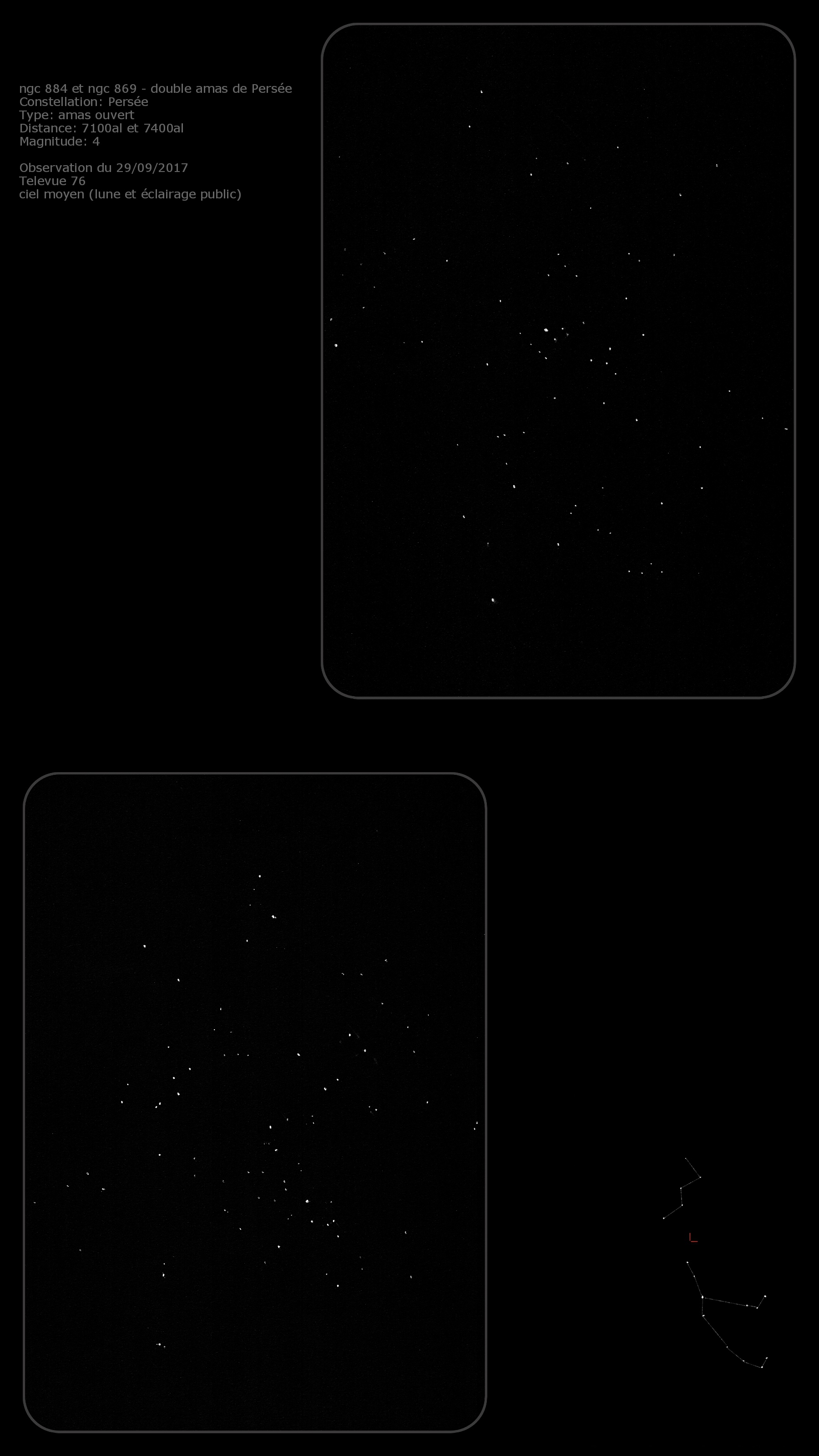 Le double amas, bien que non visible à l'oeil nu, est très clean à la lunette. Je reste dessus.