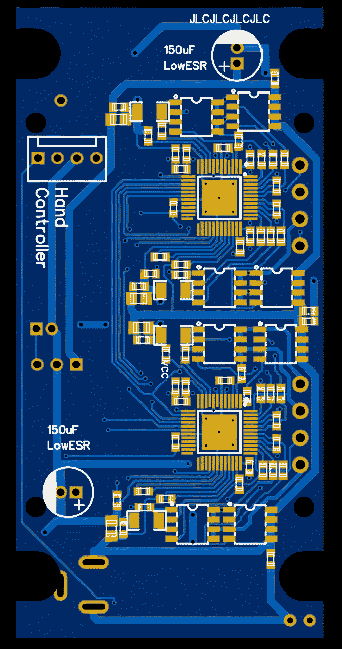 vu la carte, il n'y aura pas d'évolution dessus ( le micro de l'ESP32 n'est pas dispo à l'assemblage chez JLCpcb ), les drivers sont assez costaud pour la plupart des moteurs courants, le teensy est débrochable et remplacable par un 4.0 ... et on peut la commander en 2 clics d'après le design easyEDA.