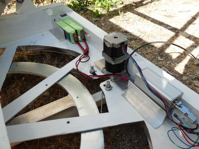 Pour le Meade, on va aussi remplacer les servos d'origine Meade par des moteurs pas-à-pas. Comme le Meade 16" fait son petit poids, je me demandais comment dimensionner les moteurs nécessaires? On n'a pas trouvé les spécifications des moteurs actuels dans la fourche du Meade 16".