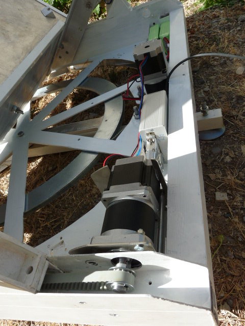 La transmission se fait par des courroies dentées de type T5, selon un schéma inspiré du T600 de l'association des astronomes d'Auvergne.