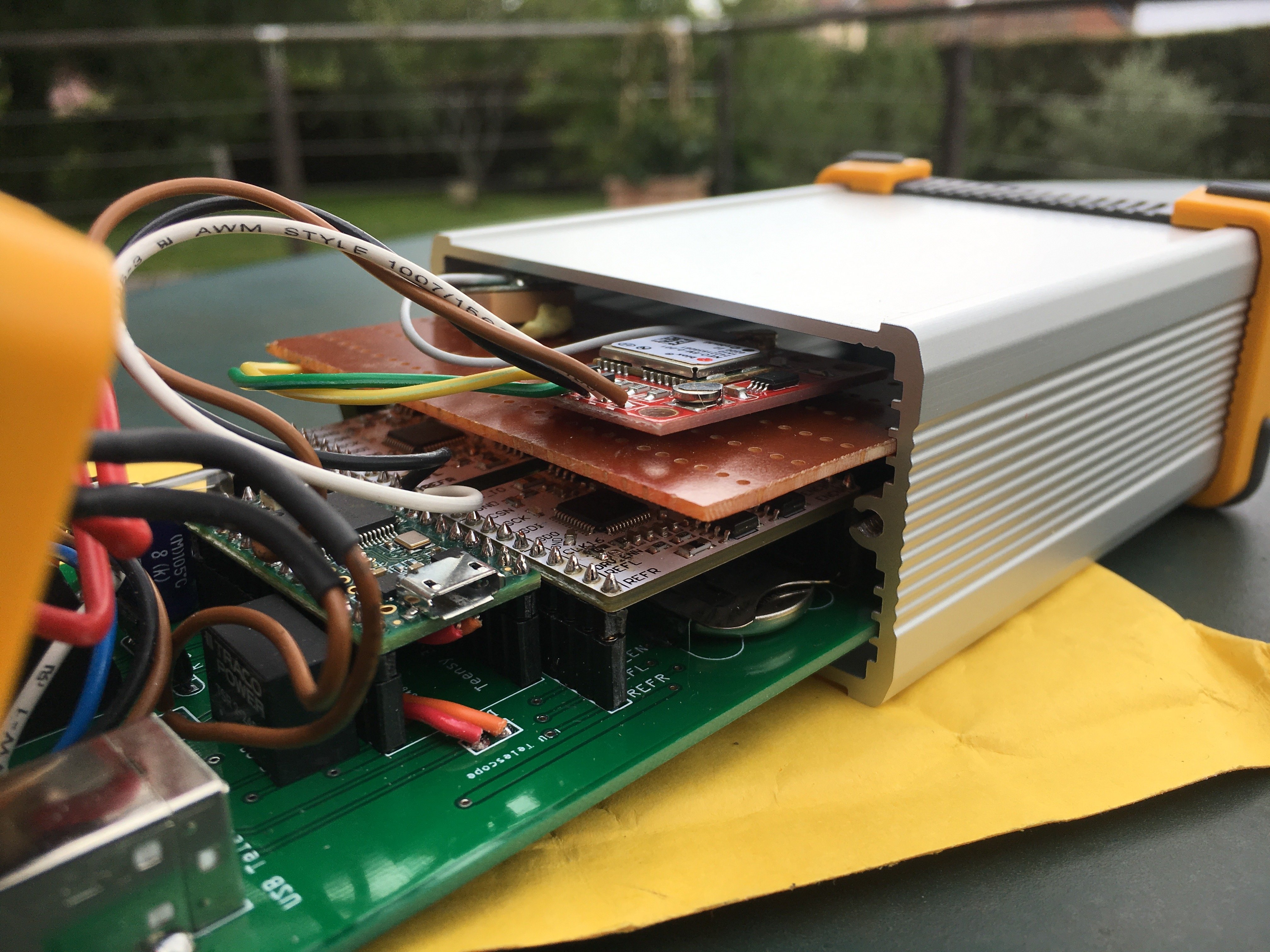 un petit intermède pour vous faire un petit retour sur la fabrication d'une version mini dans laquelle j'ai ajouté un GPS. Toutes les façades sont en aluminium, mais le GPS arrive tout de même à se synchroniser.