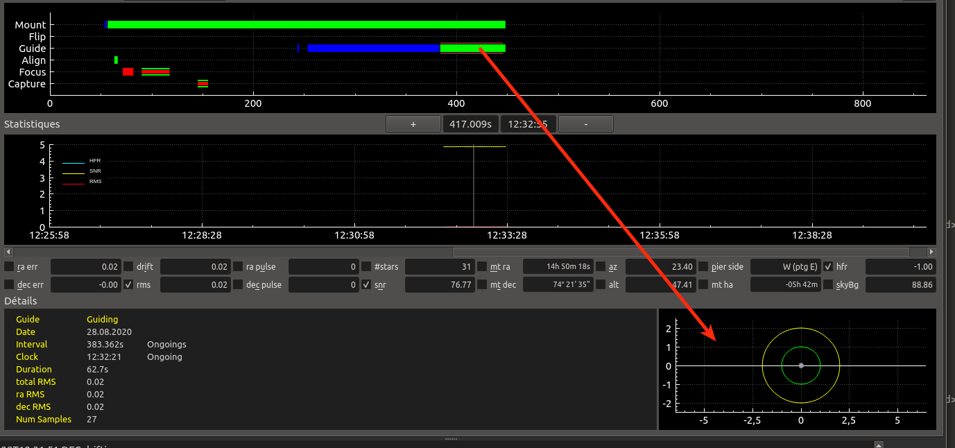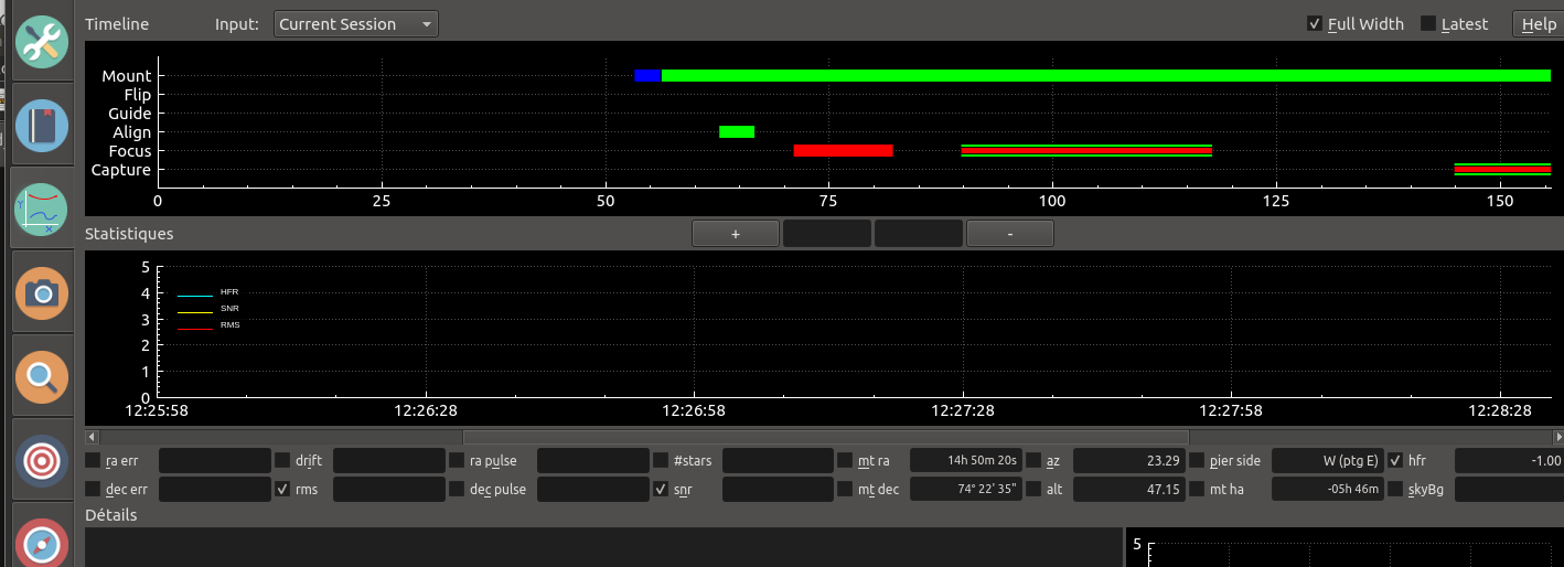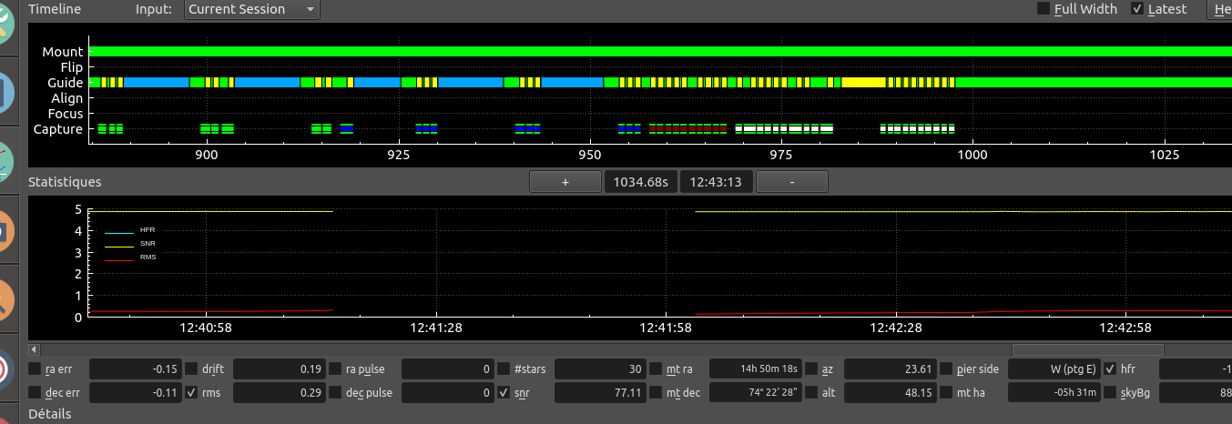 gehelem Posté 31 août 2020 Auteur Posté 31 août 2020 vendons un peu la peau de l'ours : c'est encore en cours de développement, mais c'est tellement alléchant que je ne peux pas m'empêcher https://indilib.org/forum/general/7597-new-kstars-ekos-module-analyze.html#58946 c'est un nouveau un module d'analyse de session ajouté à Ekos, pour surveiller en live ou à posteriori tout le déroulement des actions j'ai un peu joué avec, c'est une merveille !!