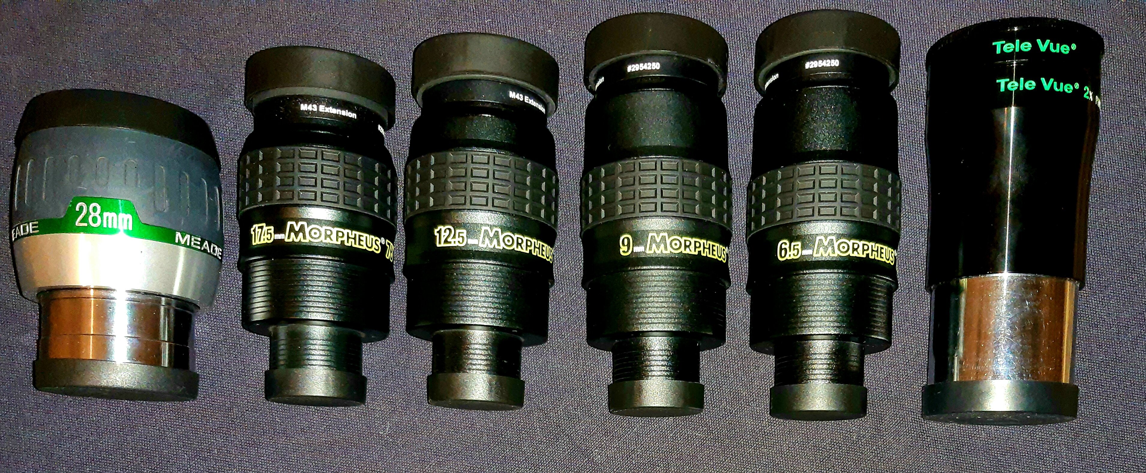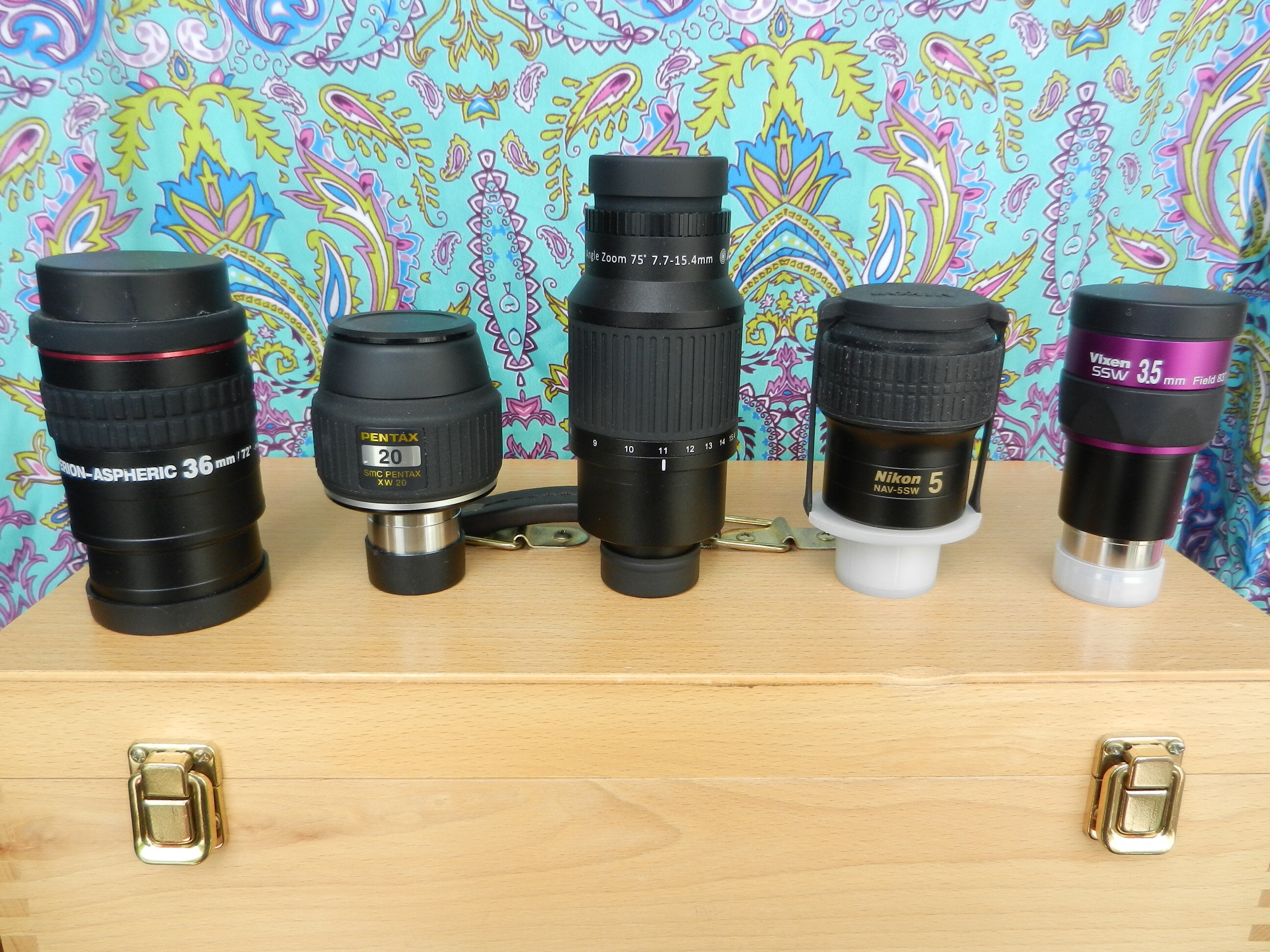 En attendant l'arrivée de mon zoom je cogite un peu : l'ES 4,7 est pas mal mais je commence à être exigent sur le recul d'œil. Et le test des XW m'a montré que j'aimais bien voir tout le champ sans avoir à tourner la tête. En passant de l'ES 4,7 au XW 3,5 j'avais l'impression de voir plus large avec ce dernier, malgré 12° de champ en moins, juste parce que je voyais le cercle image. Donc pour le remplacement du 4,7 je me concentre sur un champ plus petit, mais avec un tirage plus conséquent.