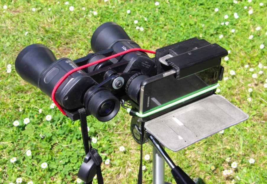 Dans la foulée des couplages de mon smartphone sur des oculaires de télescope, j'ai poursuivi l'adaptation sur des jumelles 10 x 50 (Lidl).