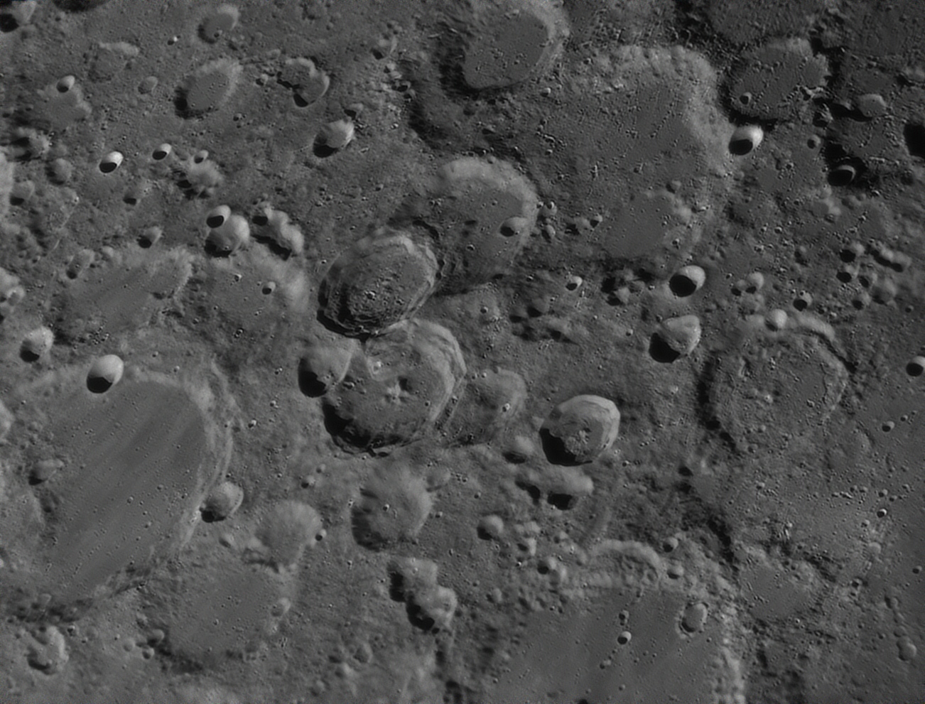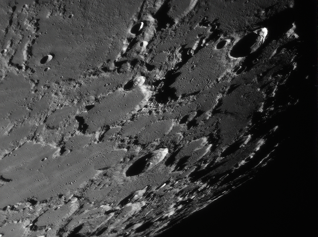 Cette soirée du 24/02 a été bien calme niveau turbulence. J'ai mitraillé la lune jusqu'à ne plus avoir de place sur le disque dur. Malheureusement pas assez de place pour faire la mosaïque.