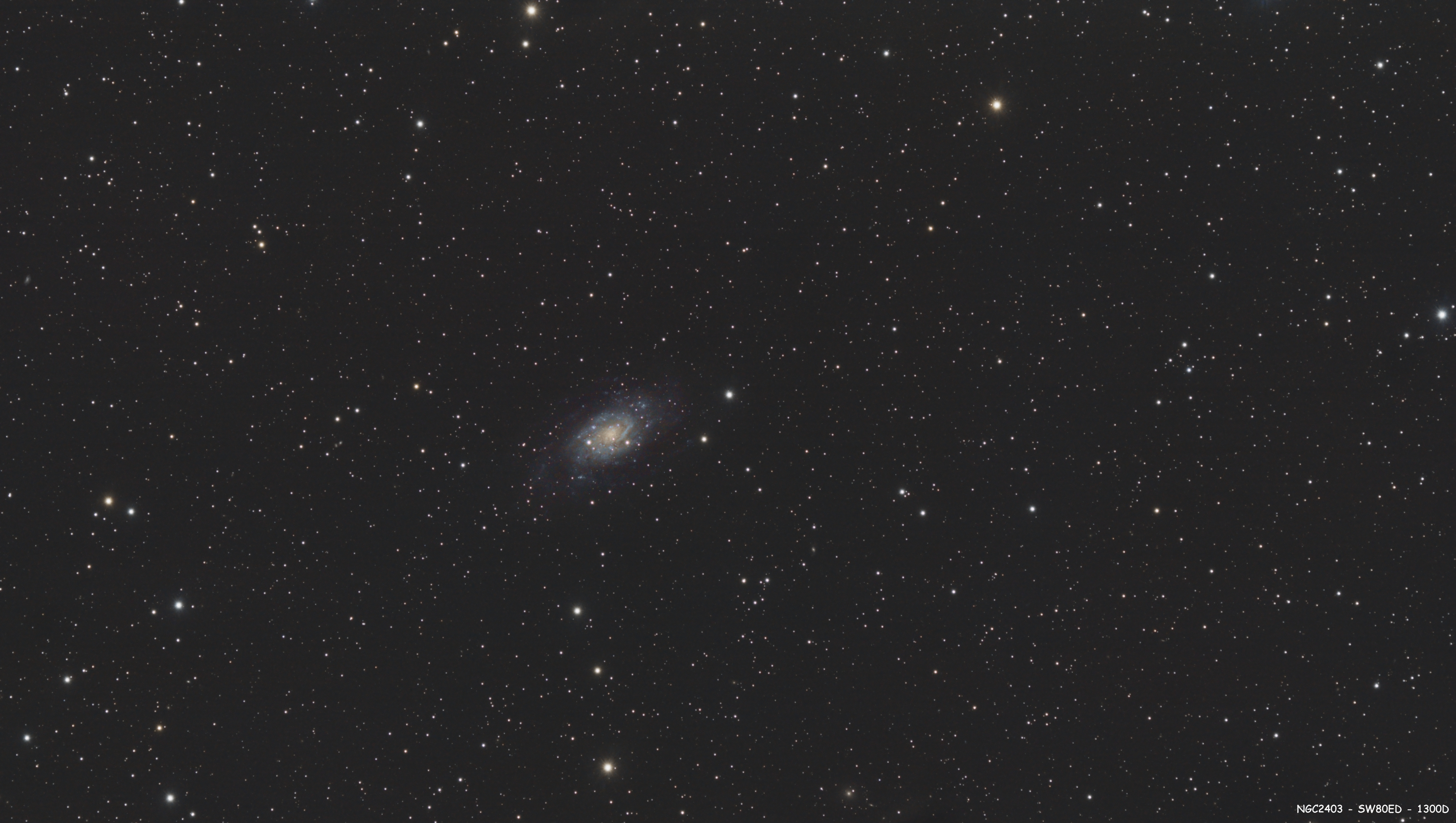 NGC 2403 est indiquée avec une brillance de surface de mag 23.60 dans stellarium ce qui est compliqué à aller chercher avec la 80ed + canon 1er prix du commerce :D