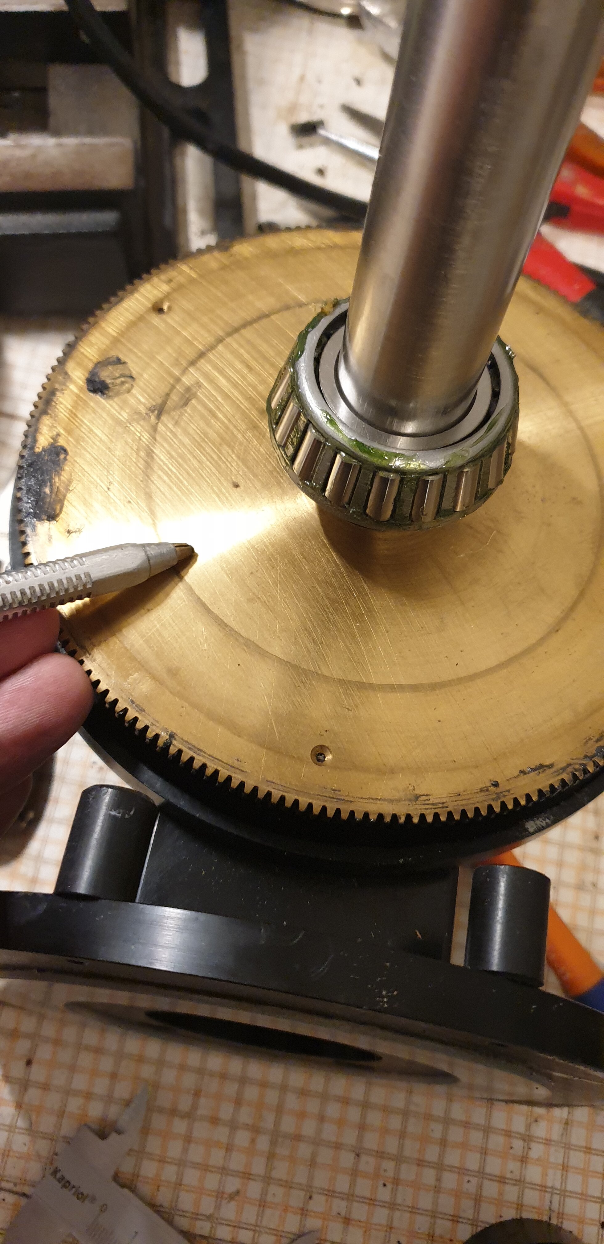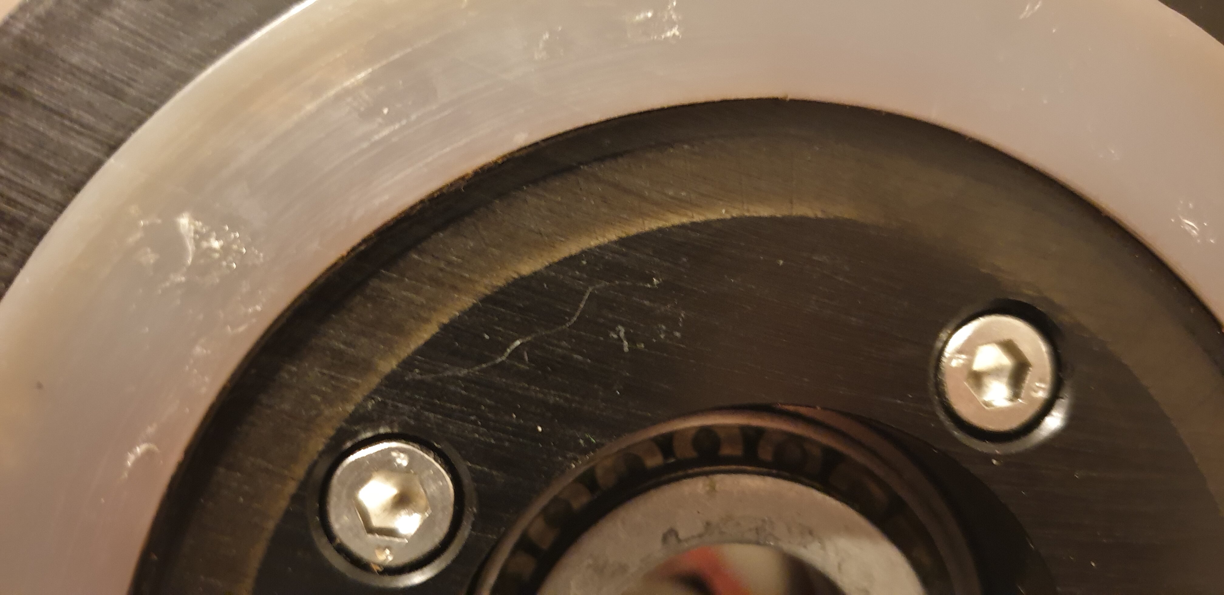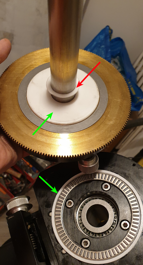 D'ailleurs on voit bien que la poussière d'usure de la couronne (jaune) se retrouve en face sur le support en alu...