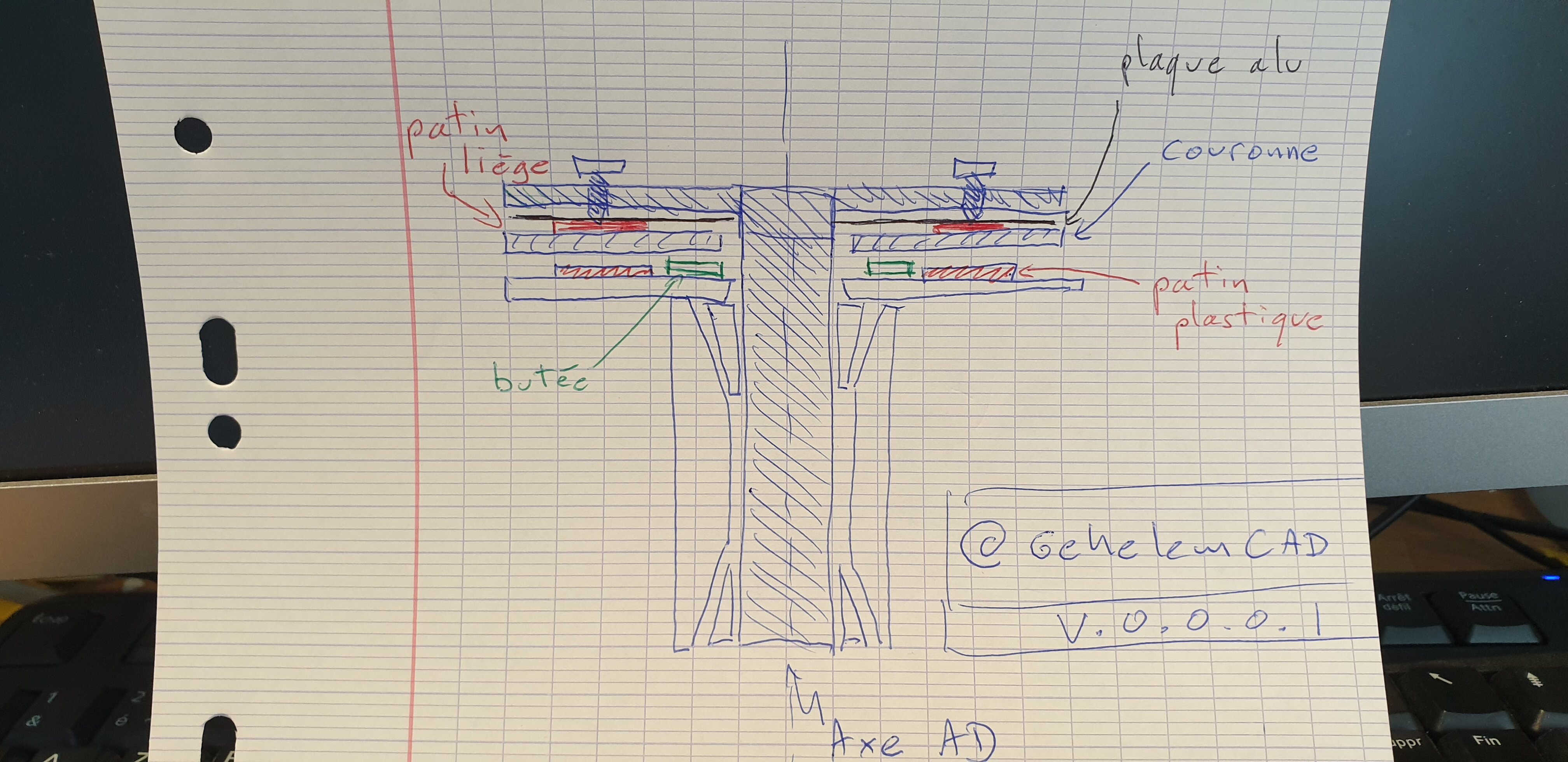 Je vais attendre en passant au montage des moteurs ; qq maquettes en impression 3D et je découperai la pièce finale en alu quand j'aurai trouvé la bonne combine qui colle avec les poulies/courroies que j'ai en stock.