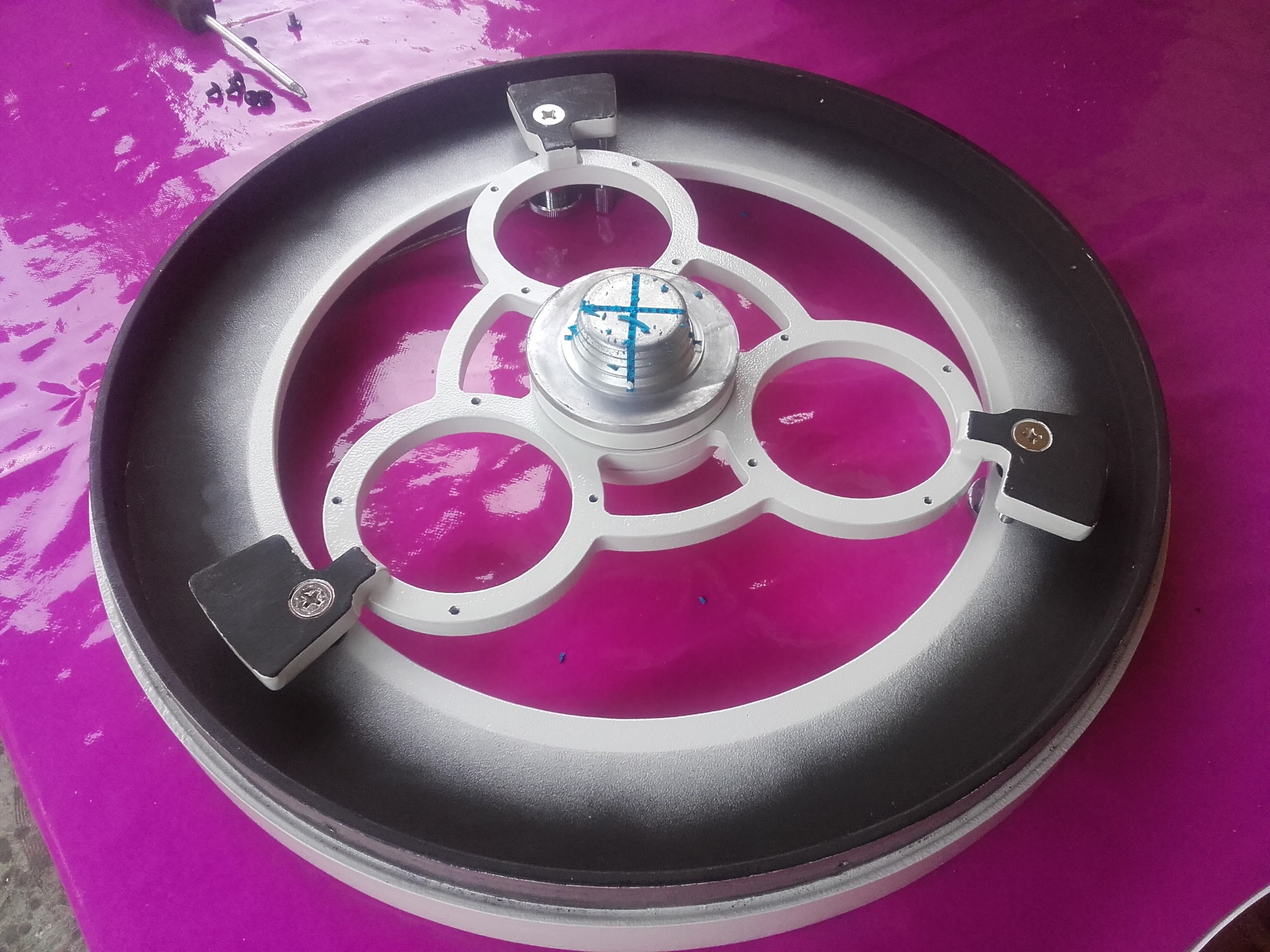 Je vous répondrai, un peu plus tard en détail sur mon Pc mais cela n'a rien avoir avec un serrage de bourrin, puisque le miroir est déjà solidarité... le support centrale est livré monté. Ce sont uniquement les 3 vis chromé qui se vissse sur le support circulaire du tube et les vis de collim.