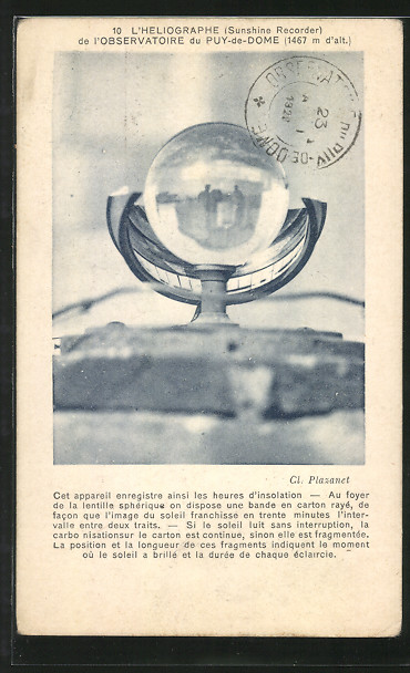 alaindumercantour Posté 5 juin 2018 Posté 5 juin 2018 Voilà l'héliographe de Campbell, modèle Casella, 199 euros sur le coincoin. Sert à mesurer par brulage sur bande cartonnée métalisée la durée de l'ensoleillement quotidien et en partie son intensité. Précision en utilisant l'ancienne procédure normalisée par l'ancêtre de l'Orstom, environ 2 m de temps et 10 % de nébulosité. Traînait sur tous les aéroports jusqu'en 1998, au niveau des centres meteo, certains observatoires aussi. 1