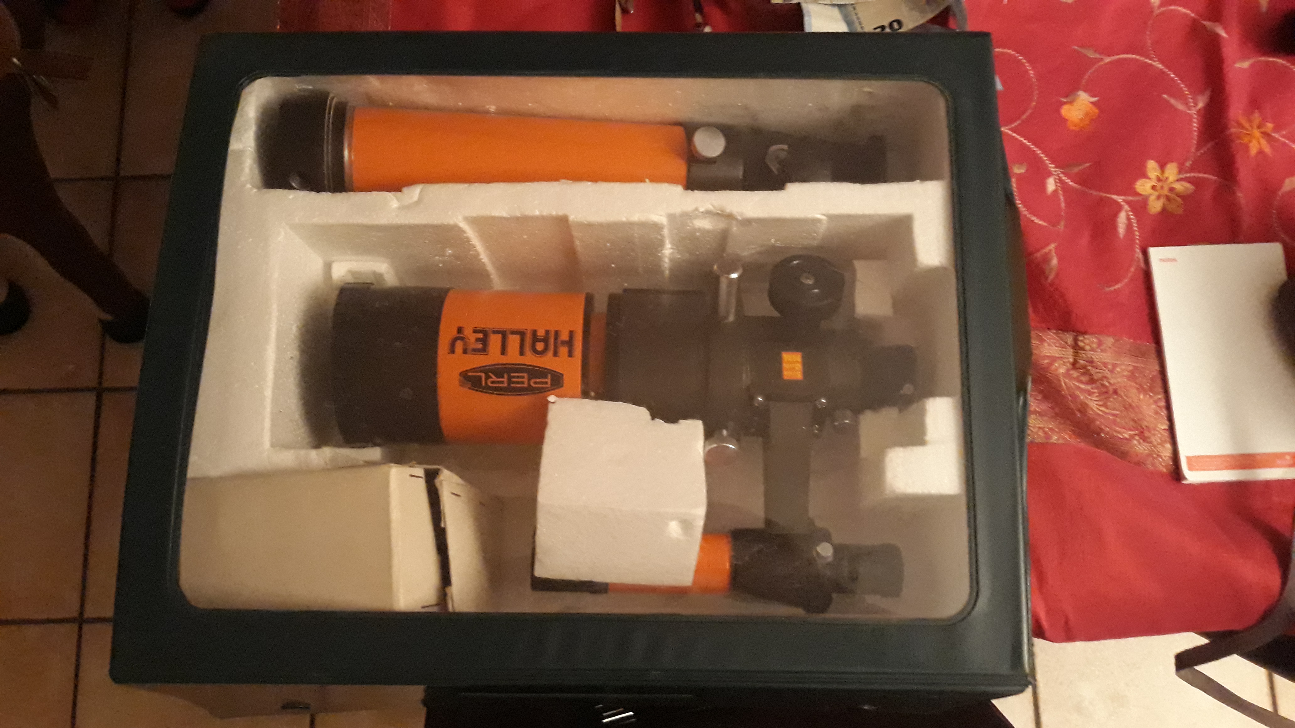 Jean-MiCiel Posté 3 juillet 2018 Posté 3 juillet 2018 Bonsoir @ouki! Oui, j'ai essayé le 80, et son utilisation est agréable, mais à vrai dire, moins que celle de la 70, cette dernière n'usurpant pas sa réputation (voir à son sujet l'article plus qu'intéressant pour les Perl Halleytistes que nous sommes tous, qui lui est consacré dans le numéro 91 (Mars Avril) d'Astrosurf magazine)... Mais il faut dire que ma situation parisienne, fort lumineuse (euphémisme…), n'est pas propice à l'utilisation de ces matériels, qui doivent normalement exceller (compte-tenu tout de même de leur modeste diamètre) sur des objets étendus et diffus... Et je passe sur mes conditions d'observation: un balcon, certes long, mais relativement étroit, plein Est, vue plutôt bien dégagée, au 8ème étage, avec le 9ème masquant plus que le Zénith… Et cerise sur le gâteau, bien qu'aimant les arbres, de magnifiques peupliers, qui poussent, poussent, dont l'un, situé à quelques mètres, s'amuse à boucher l'horizon intéressant vers le sud-est…. La chasse aux planètes de cet été débutant est donc fonction du bon vouloir de ces messieurs les peupliers et de la brise existante… Mais le Perl Halley 80, même dans ces conditions, n'est pas si désagréable à utiliser, même en planétaire: hier, Saturne, bien que très petite (Oculaire de 7mm, grossissement 78), avec une turbulence notable (au moins, les peupliers sont de bons indices!), Saturne, donc, par brefs instants, se laisse admirer… Une remarque qui me vient maintenant, et qui n'est pas réservée à notre Club Vintage, mais souvent fort présente en utilisant ces instruments: je suis gaucher, et mon œil "directeur" est le gauche; et bien les chercheurs sont souvent, (toujours?) mal placés, obligeant le gaucher à être droitier… Pour le moment, j'observe en posant les instruments sur une table: ce n'est pas le plus pratique, en particulier pour le 80 (télescope) avec son oculaire pas toujours bien placé, vu la hauteur de la table…. C'est quand même plus aisé avec la lunette 70! Mais je compte bientôt sortir mon pied photo, qui devrait fournir une position plus agréable… Mais rien ne vaut pour ces instruments des cieux plus sombres, que l'été et l'éloignement de Paris leur offriront peut-être... JM