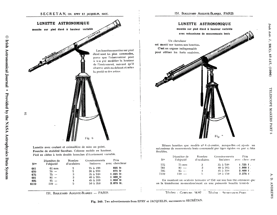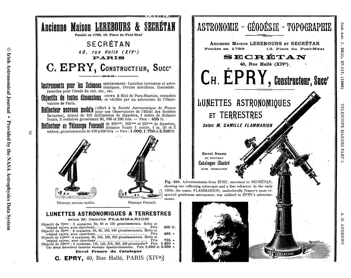 staffy Posté 9 août 2018 Posté 9 août 2018 En effet, il est possible qu'il date de 1854 (ou de quelques années plus tard). Marc Secrétan s'est associé en 1844 à Peymal Lerebours, fils du fondateur d'un atelier d'instruments optiques et a pris la direction de cette affaire lorsque celui ci s'est, en 1854, retiré des affaires. Un autre catalogue (mais bien plus récent : http://tobin.fr/Secretan_Instruments_astronomiques_1942.pdf