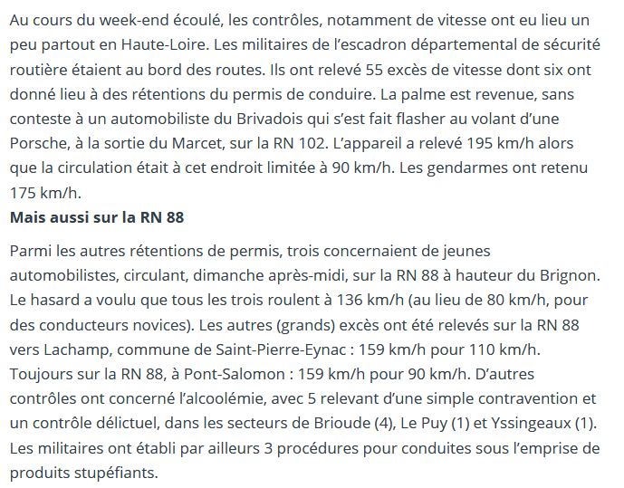Mais comme je le pense les 80 sont inutiles, c'est 60 qu'il aurait fallu, les 90 étaient acceptés par la Sécurité Routière avant le 31 Juin minuit, dommage qu'on nous ait raconté que nous étions en sécurité à cette vitesse, encore un mensonge, voilà pourquoi je ne les crois plus.