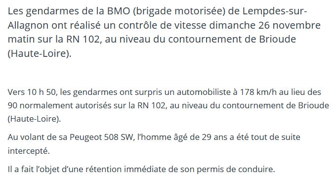 Personnellement, j'ai compris la leçon et je ne roule plus qu'à 65 km/h compteur sur route (sauf 50 dans les villages bien sûr), marge de sécurité pour les radars, marre de scruter le compteur avec sans arrêt : 70/80/70/90/80 sur un kilomètre, et cela me permet de regarder le paysage et d'économiser l'essence ! :)