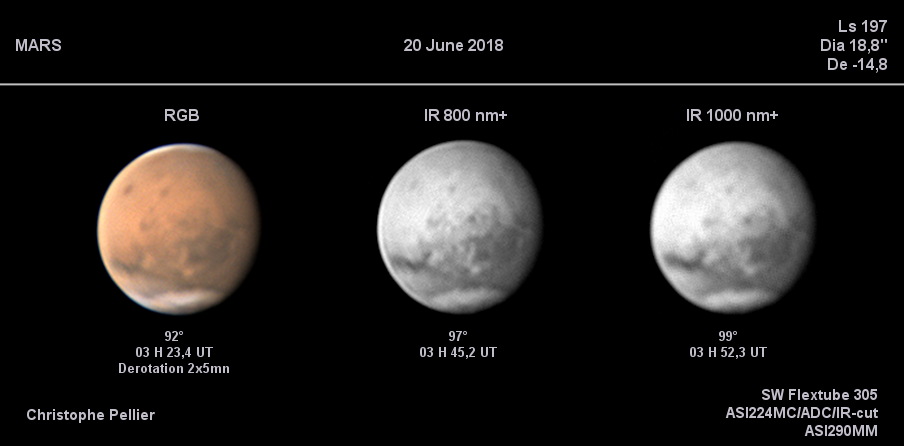 Evolution de la tempête sur Mars, 13, 20 et 22 juin