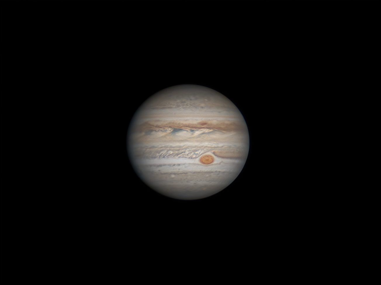 Jupiter le 19/06/2018 à 20H38.44 MID UT. Celestron 14xlt, Zwo IMX 224C, Barcon, ADC Pierro-Astro MK3. Ec