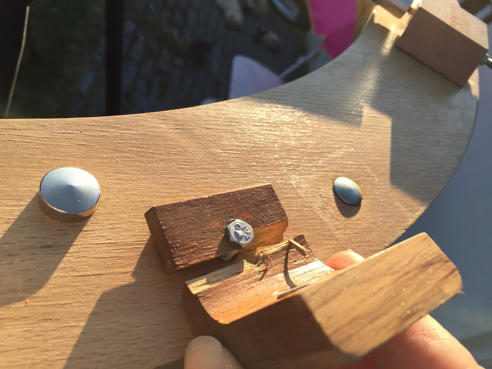 Pour la tablette, si elle est stabilisée par des vis qui traversent les tourillons, c'est parfait, mais sur le mien, il n'y avait rien pour immobiliser la tablette par rapport au tourillon (il y avait même un jour entre la tablette et le tourillon !)