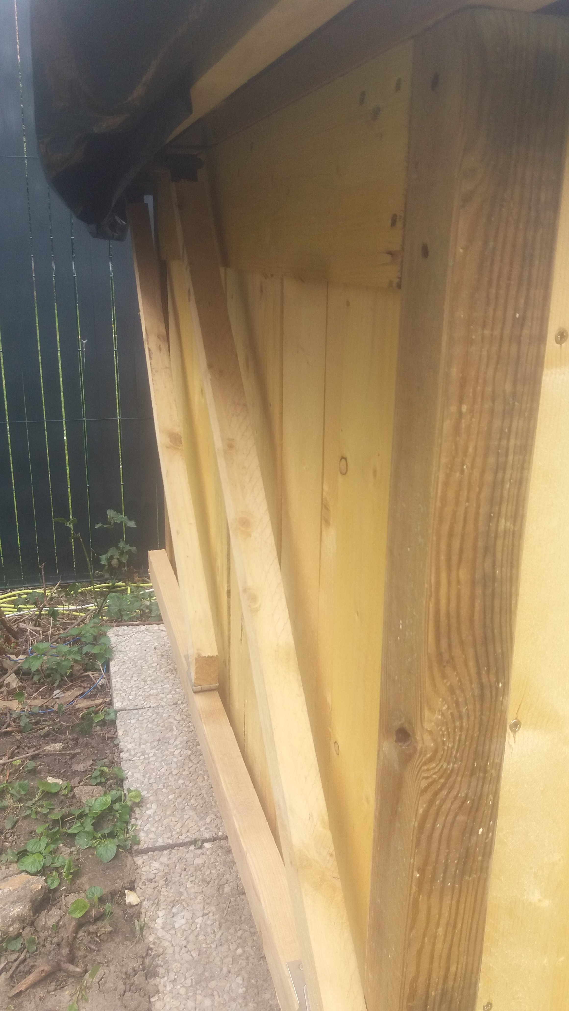 Il suffit de remettre un tasseau horizontal dans le haut pour maintenir effet rail  pour le jeu latéral  tout en décalant de façon substantielle les compas des murs mais ça implique d agrandir le toit