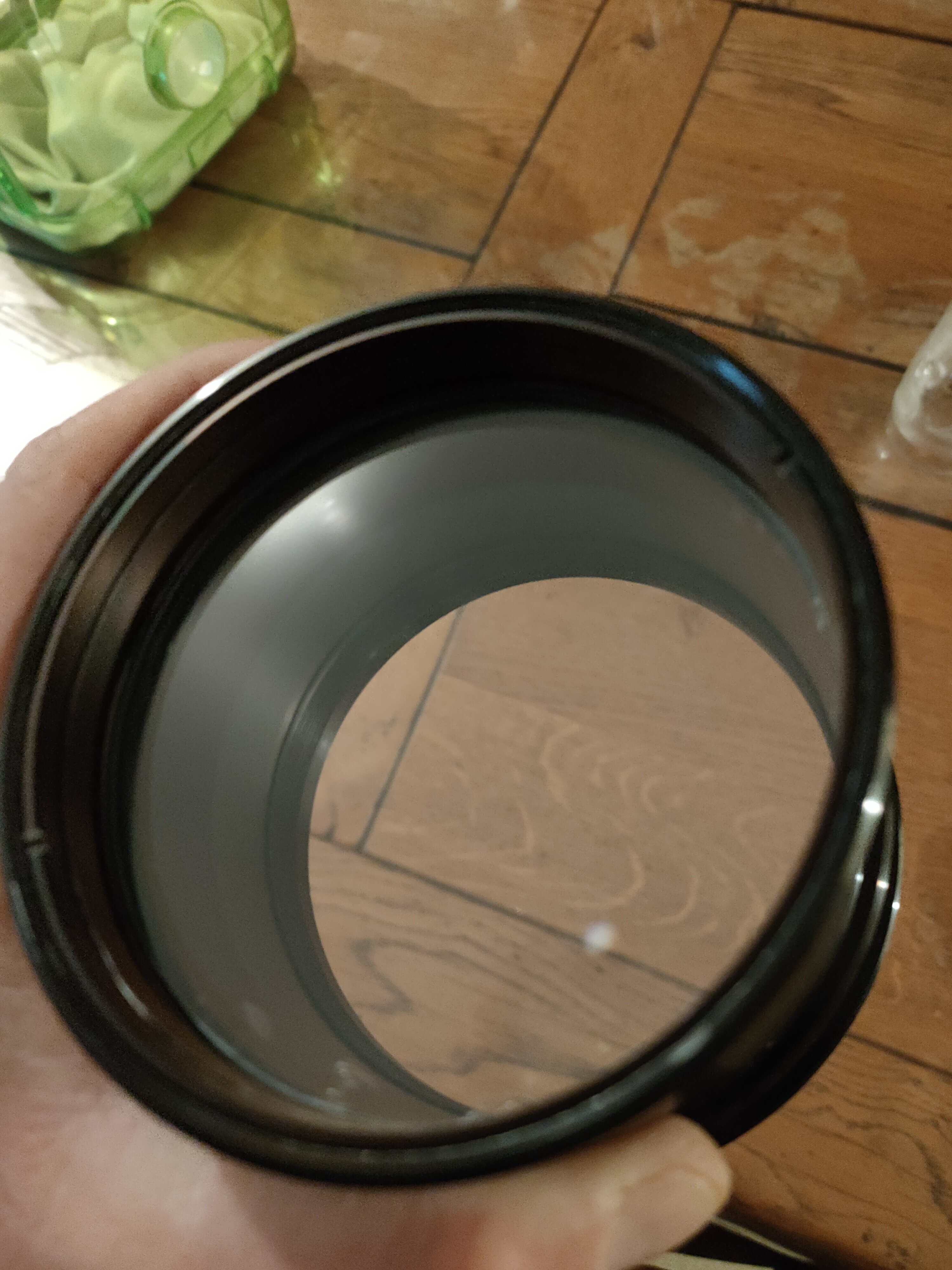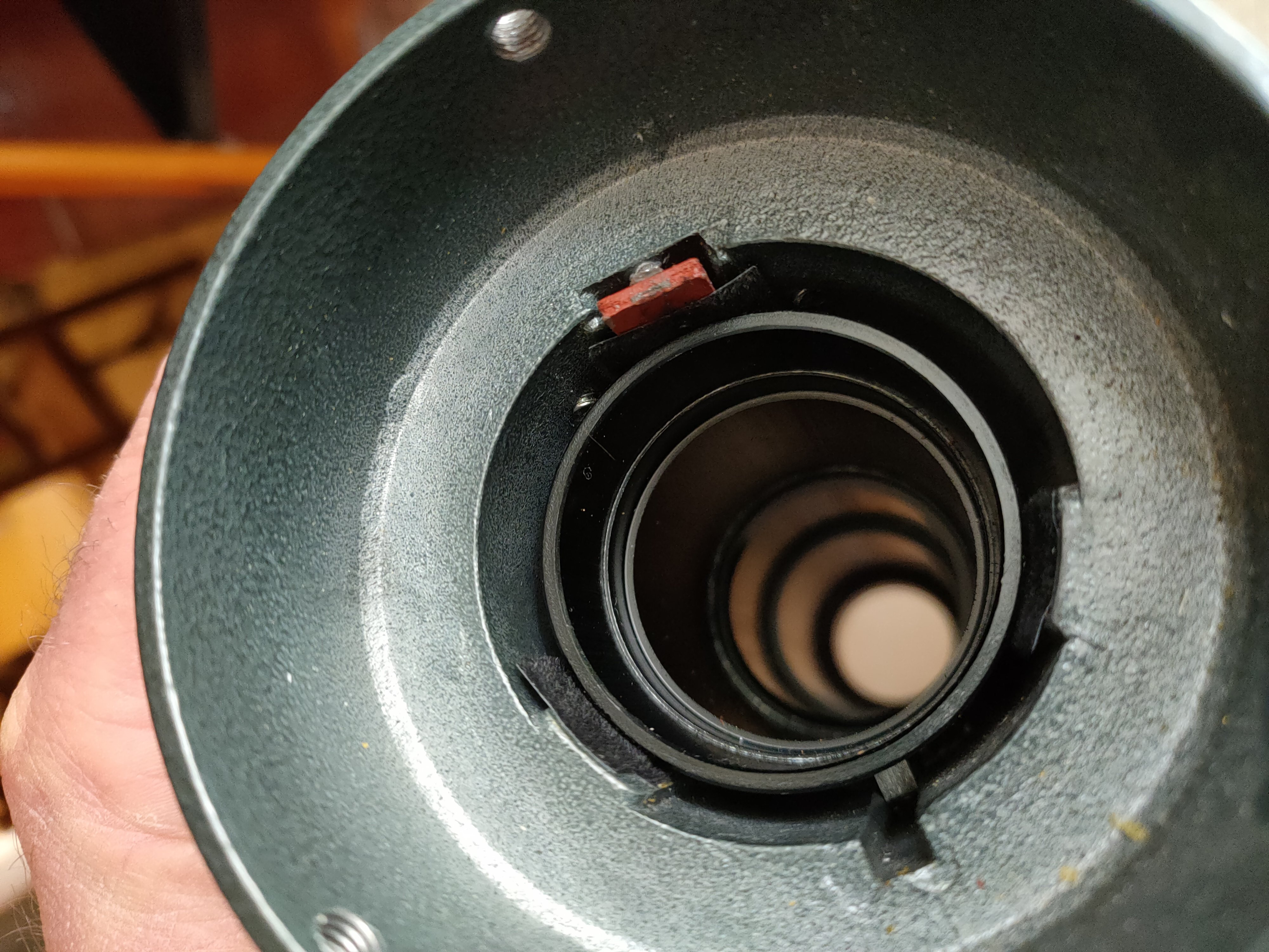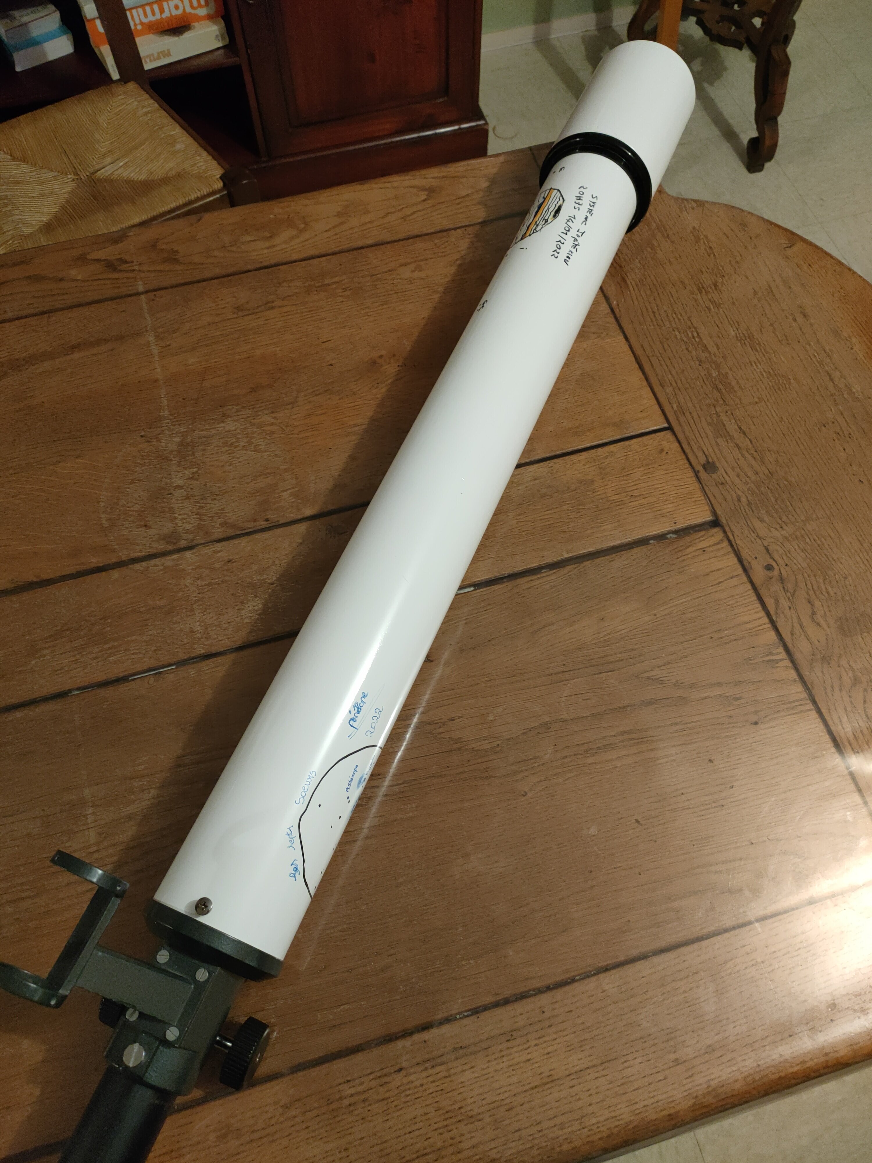 Jorris Posté 13 janvier 2022 Auteur Posté 13 janvier 2022 Yo le club Voyez, ce que j'ai récupéré, 3 ans et demi apres l'autre, j'en ais retrouvé une. 395 (équatoriale) ou 390 (azimutale) Meade 90 1000 En assez mauvais etat, je l'ais échangé contre une malle de transport. Un collier cassé, crémaillère bloqué, optique impactés sur les bords (surement un serrage excessifs), traitement optique atténuer (il serait difficile apparement d'en trouver une avec un traitement en grande forme, d'après ce que j'ai lu). Mais bon voila, l'optique reste en bon etat mise a part les impacts sur les bords, et se traitement a moitié atténué, pas de rayure. J'ai commencé par revoir la crémaillère, l'ancien utilisateur avait mis un espèce de scotch épais qui s'était enroulé a l'intérieur et avait tout bloqué. Apres un nettoyage et une double épaisseur de velours au bon endroit, je retrouve une crémaillère tout a fait fluide, avec seulement un micro-jeux, sans point dur. Pas la peine de la changer, elle fera bien le job. J'ai aussi redressé la molette de map avec son axe, complètement tordu. Ca m'a pris un peu de temps pour redresser pil poil dans l'axe, mais c'est ok.