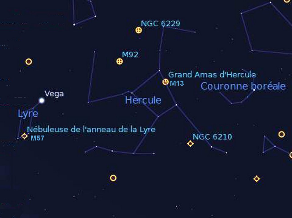 Après pour le repérage je sais très bien ou se trouve Hercule (pour M13) mais comme je l'ai dit précédemment si je pointe mon télescope sur la constellation, que je le lève au maximum et que je met un laser au dessus, le rayon du laser arrive en dessous de M13.