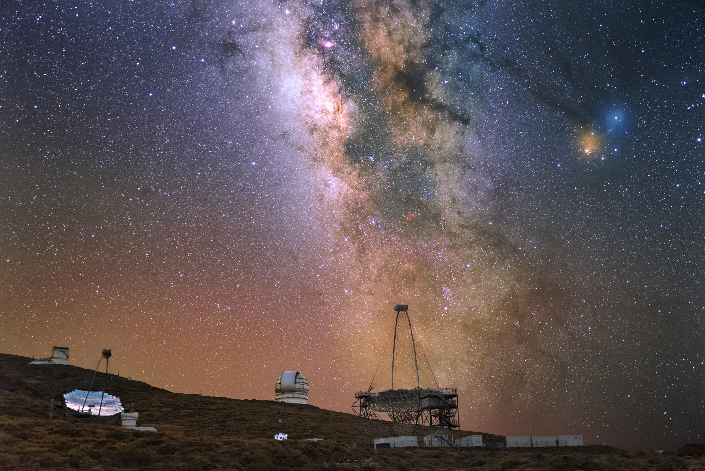 La voie lactée reflète dans le Magic Telescope et le GTC (La Palma, Canaries)