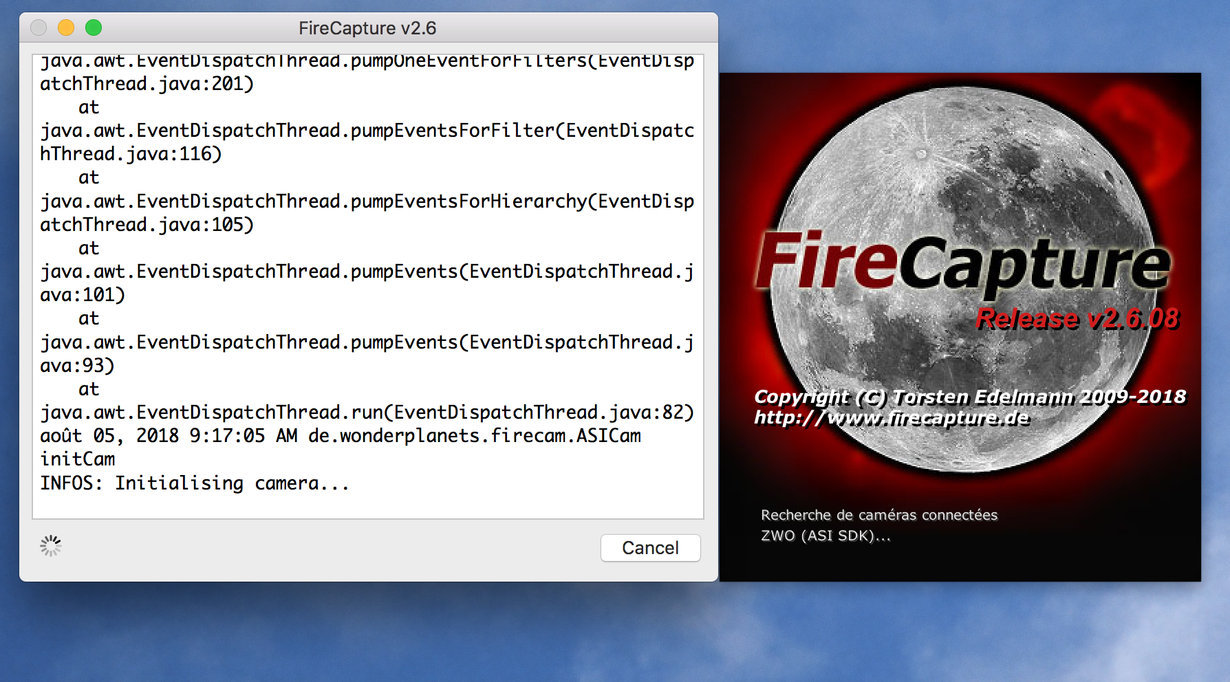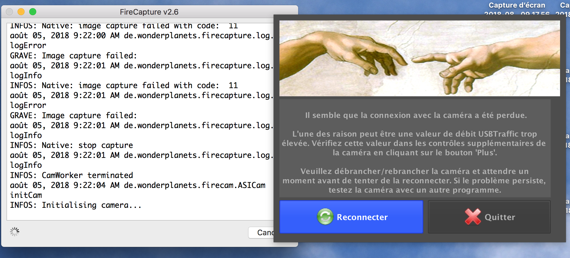 Firecapture - ASICAP : ZWO Caméra ASI120MC-S déconnexions permanentes
