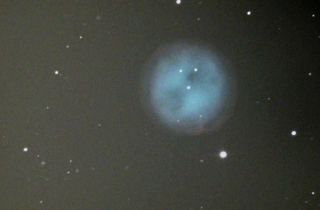 J'ai essayé d'imager depuis ma terrasse mais la proximité d'un lampadaire est bien visible sur mes images. Par exemple ici sur la nébuleuse du Hibou.
