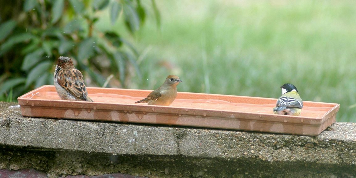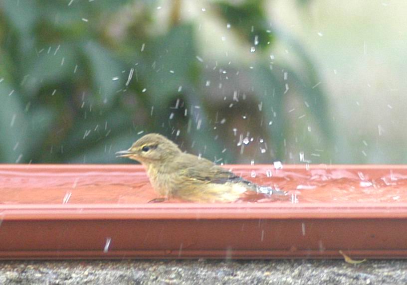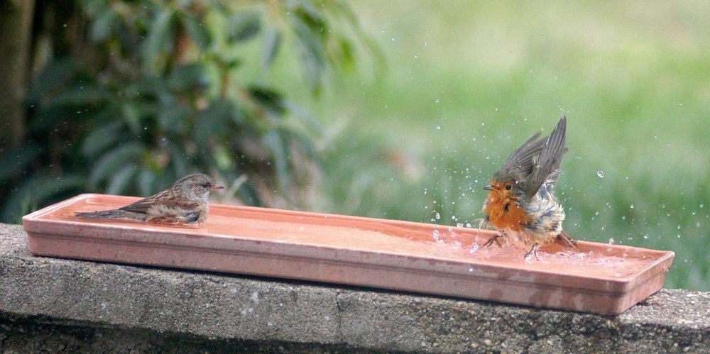 Comme le dit le rouge gorge, beaucoup s'éloignent je ne sais où pendant l'été pour nicher et nourrir les petits ou bien restent très discrets et ne passent que pour s'abreuver et pour une petite baignade(mésanges), puis ils reviennent à l'automne pour profiter des mangeoires et abreuvoirs. Seuls les moineaux, accenteurs, pigeons et tourterelles restent dans le secteur.