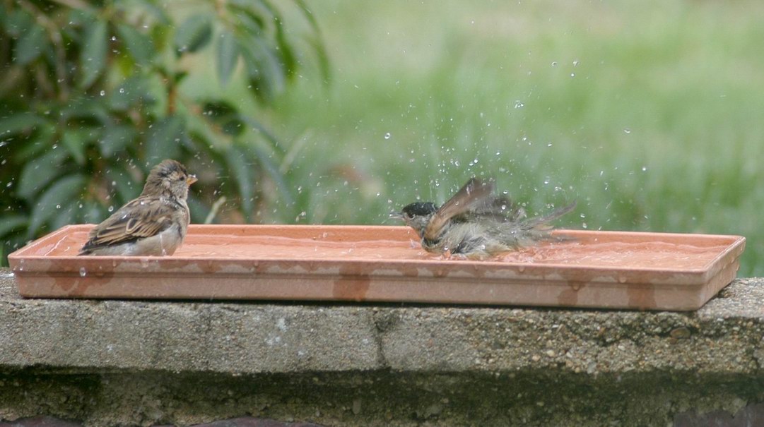 Salut Moineau, moi c'est Fauvette tête noire, elle est chouette cette piscine...
