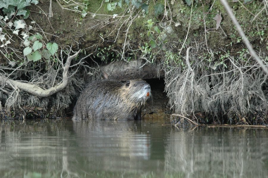 Ces ragondins creusent souvent des terriers impressionnants dans les berges :