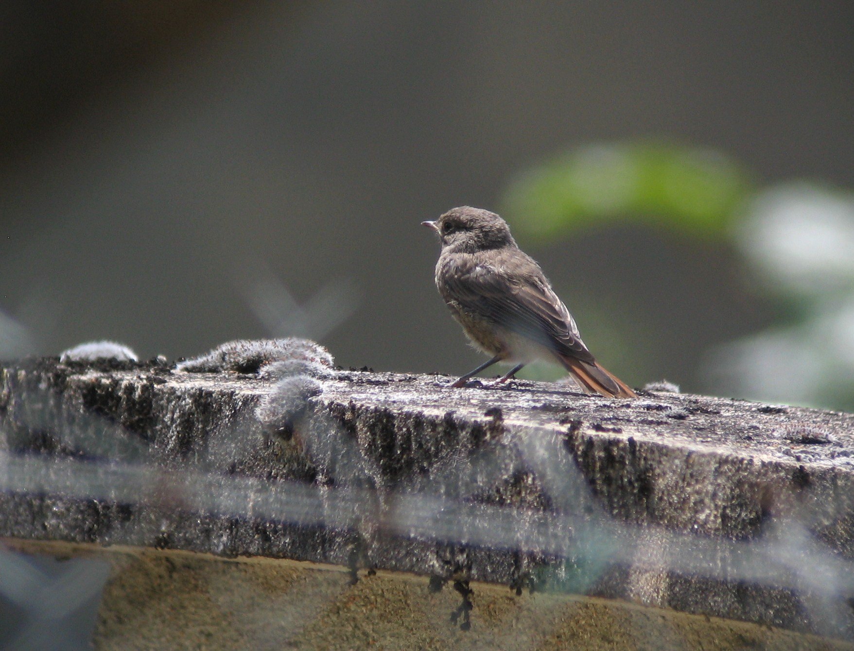 Un jeune rouge-queue, duveteux encore et un peu perdu, à 16-18 mètres environ :