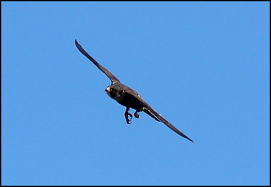 Oui, un faucon pèlerin. Belle rencontre,  je n'en ai jamais vu. Je n'ai rencontré que son "modèle réduit", le faucon hobereau qui chasse en vol petits passereaux, gros insectes et libellules le long des bois et haies plutôt que les pigeons prisés par le pèlerin.