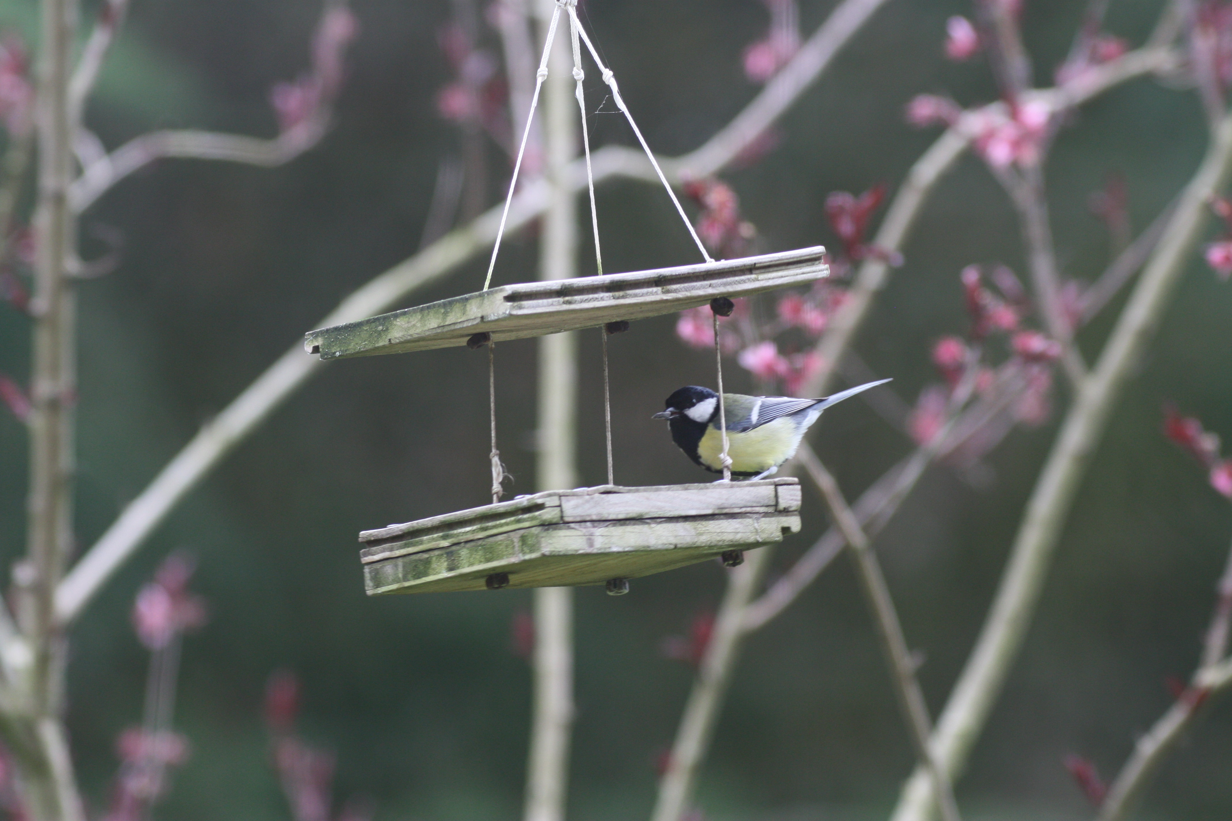 Ce qui m'a le plus surpris et amusé, c'étaient cinq ou six mésanges, habituées de mes mangeoires qui se tenaient pendant ce temps dans le  forsythia à un mètre de là.