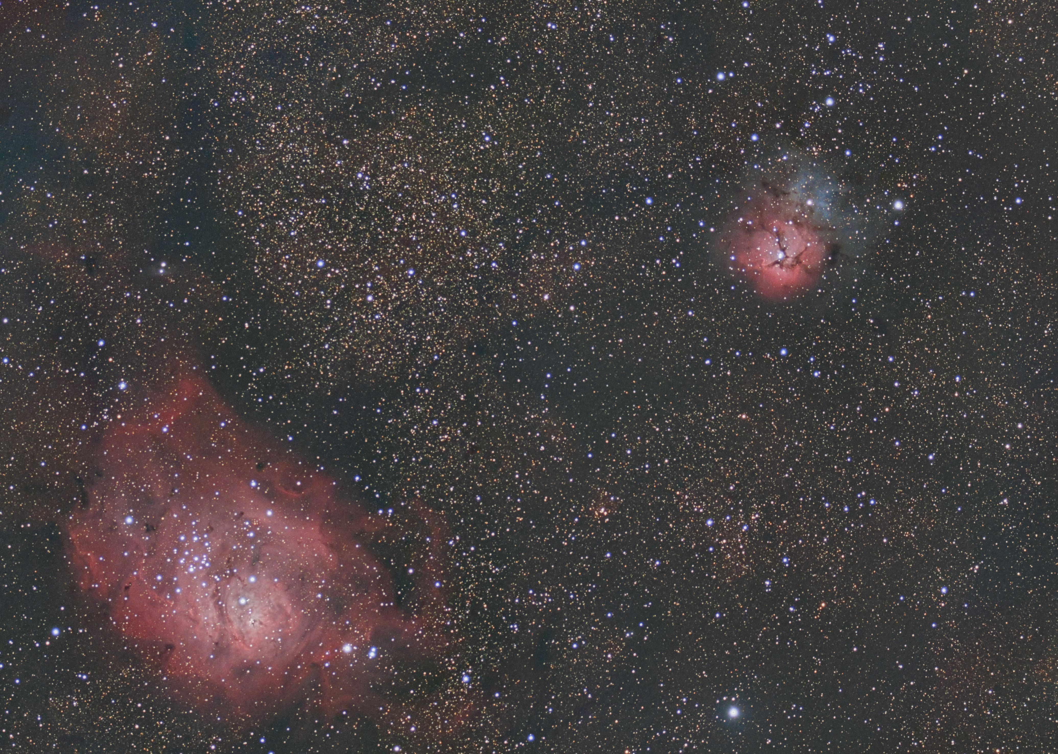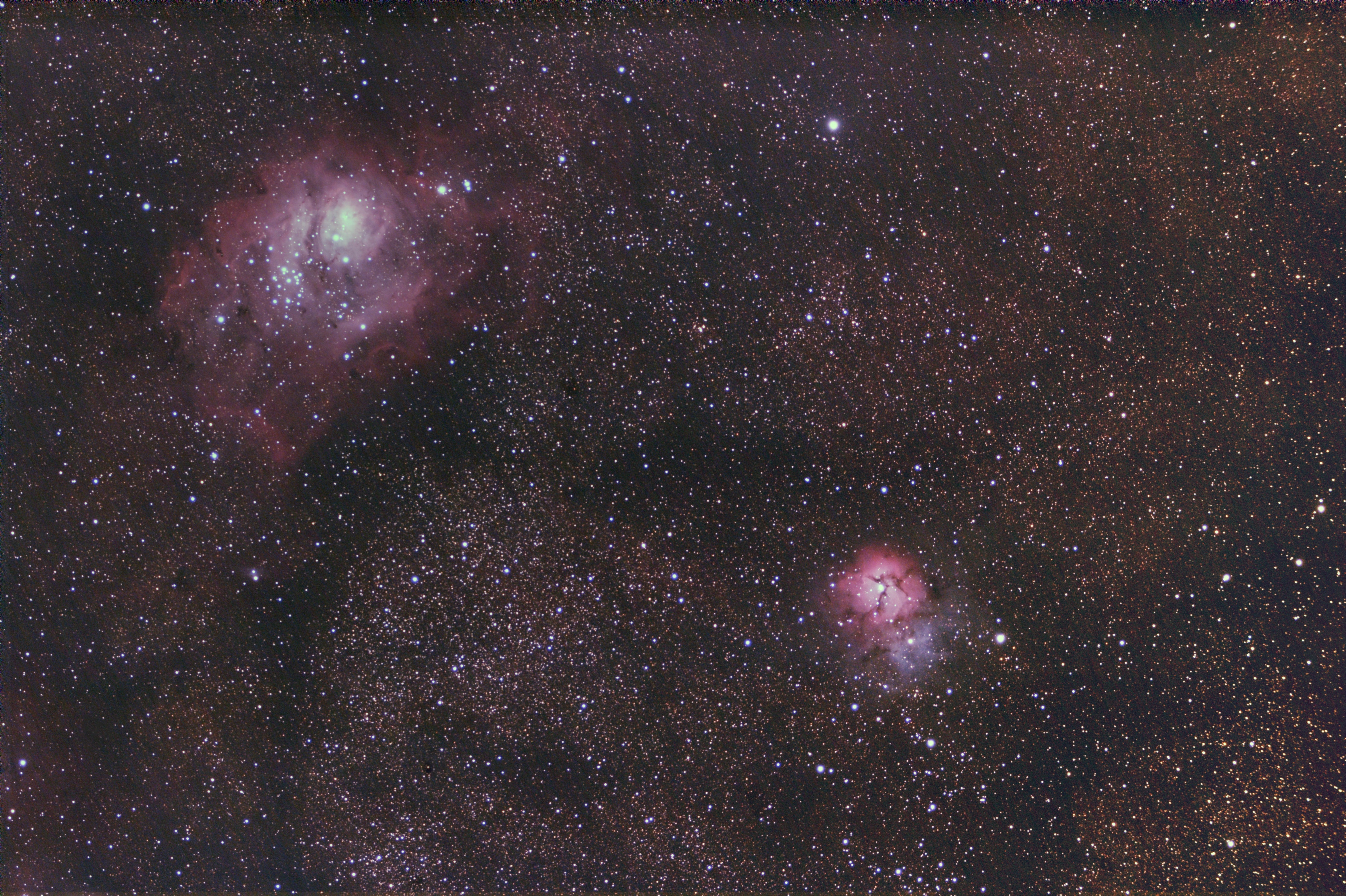 Pour le défaut en haut, j'avais fini par le bidouiller après avoir calibré le fond de ciel, grâce à l'outil CloneStamp de Pix. Ca m'a donné la version ci-jointe. J'en avais profité pour donner un coup de HDRMultiscaleTransform pour faire ressortir des détails dans le cœur de M8.