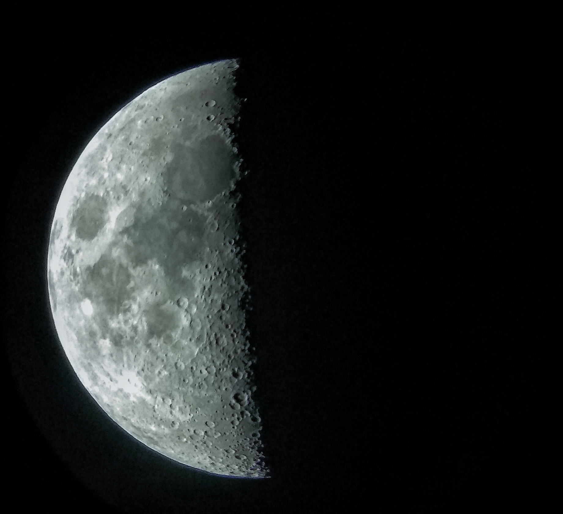 Capture d'une seule image avec Xiaomi miA1 et filtre lunaire d'époque vissé sur l'oculaire.