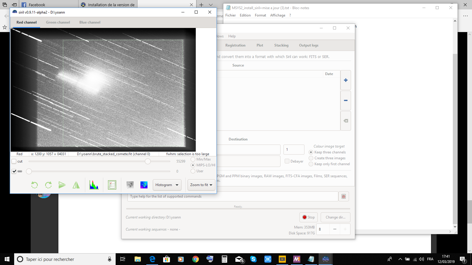 Ryo Posté 23 février 2019 Posté 23 février 2019 (modifié) je rajoute pour qui veux installer c'est facile page 1 et prendre mon fichier txt pour copier les commandes MSYS2_install_siril+mise a jour.txt Après avoir lancer myst64 dans programme M myst64 taper siril Pour le raccourcie laisser myst lancer et allez dans explorateur de fichier et allez dans le repertoire C:\msys64\mingw64\bin et faire un raccourcie de siril.exe et le renommant siril_dev Vous le placer sur le bureau et c'est bon plus besoin de lancer myst avant il y a juste a cliquez bon test avec la version dev Sauveur Modifié 12 mars 2019 par Ryo mise a jour txt 2