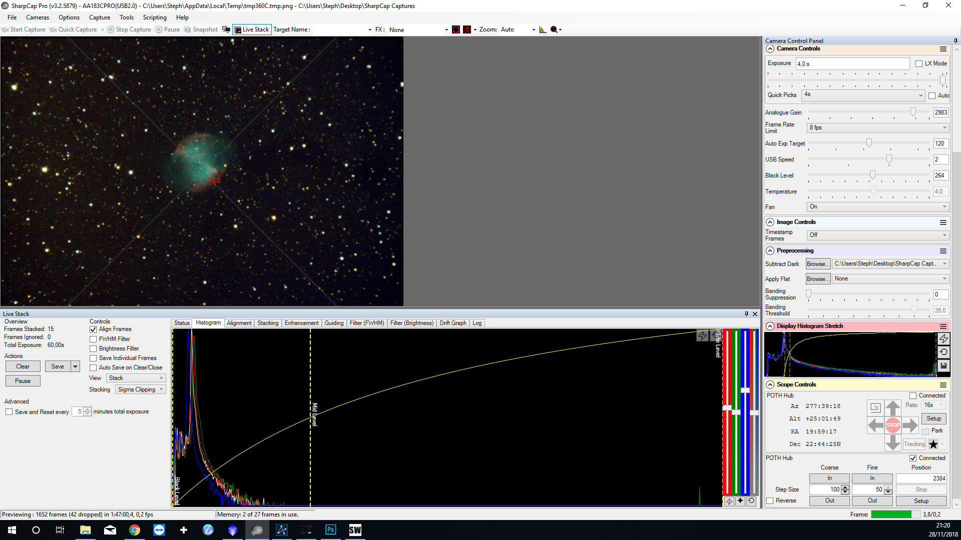 Les captures d'ecrans sharpcap m'aident ÉNORMÉMENT  pour analyser.