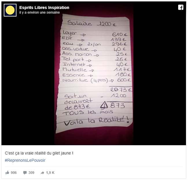 le pire dans tous ça, c'est que les gens, qui se plaignent cette fois ci, sont majoritairement des travailleurs pauvres et pas des assistés qui réclament encore plus. Ce sont des gens qui rapportent à l'état par leur travail plus qu'ils ne coutent. Je ne suis pas sur qu'ils aient pigé cette grande nuance en haut lieu. le malaise est très profond et concerne les gens actifs dans la société, une certaine majorité habituellement silencieuse, et pas des marginaux. Ca risque de devenir très très chaud fin janvier avec le prélèvement à la source, le sentiment d'être dépouillé / pressé par l'état va encore s'amplifier.
