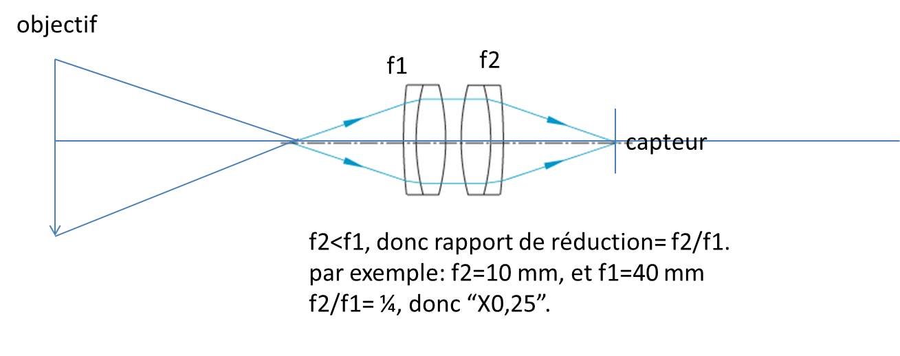 Si on diminue le facteur de réduction le foyer de l'objectif doit être éloigné du réducteur.