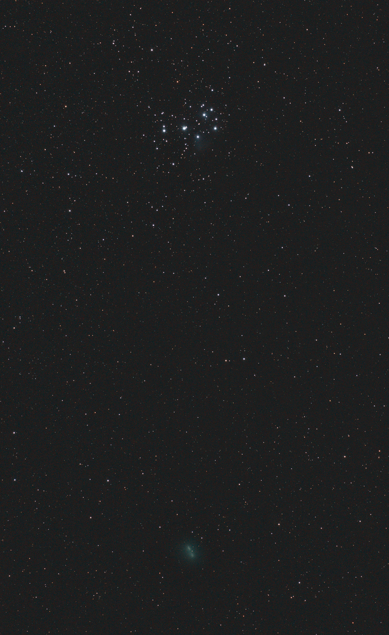 46P wirtanen - Pleiades le 14 12 2018 au 1100D à 100mm de focale