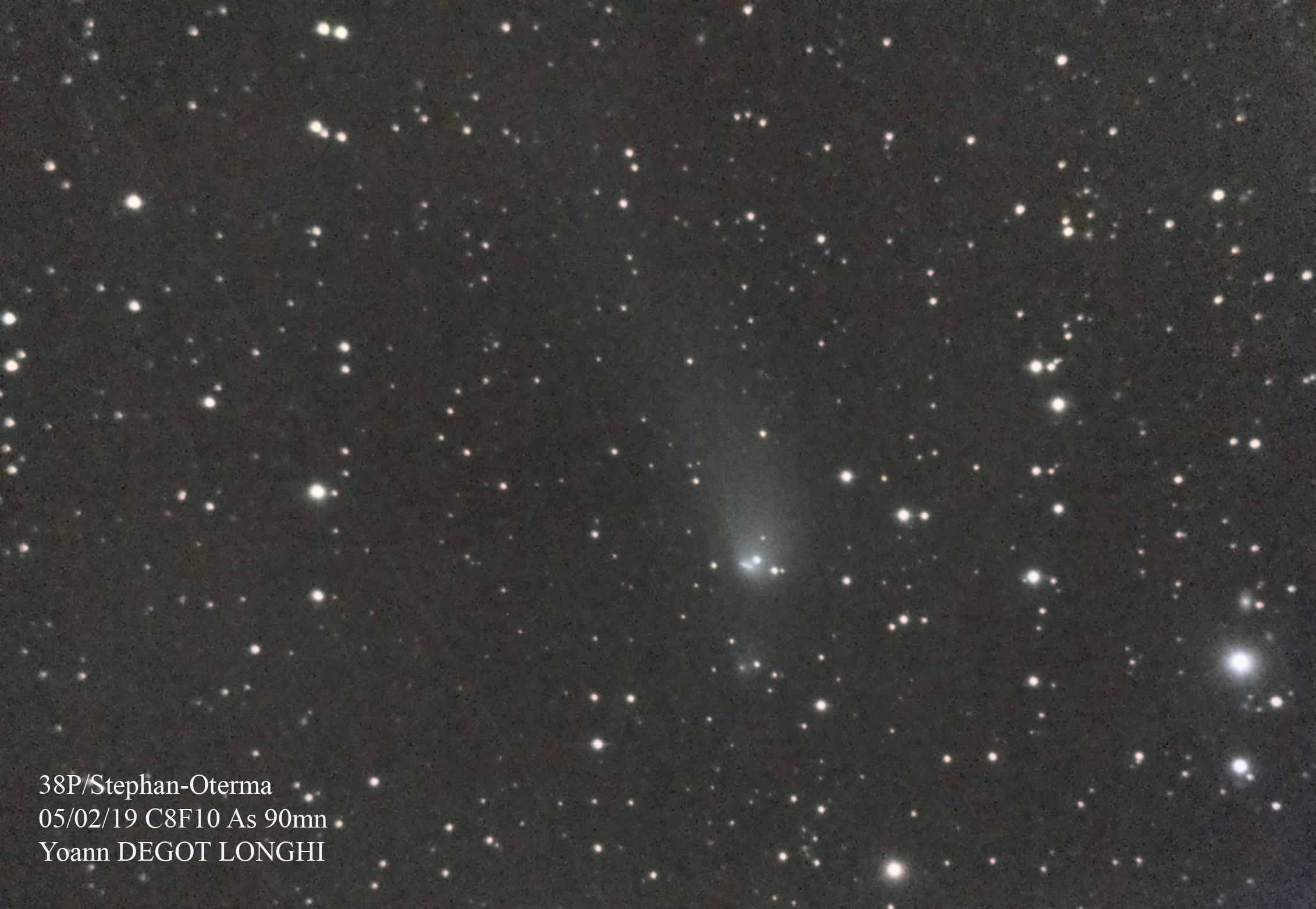 Un ciel dégagé cette semaine mais une transparence médiocre et une très forte humidité .... Je n'ai pu faire qu'une image pas terrible de la comète 38P/Stephan-Oterma. Siril n'a pas voulu registrer sur la comète malgré plusieurs tentatives.....