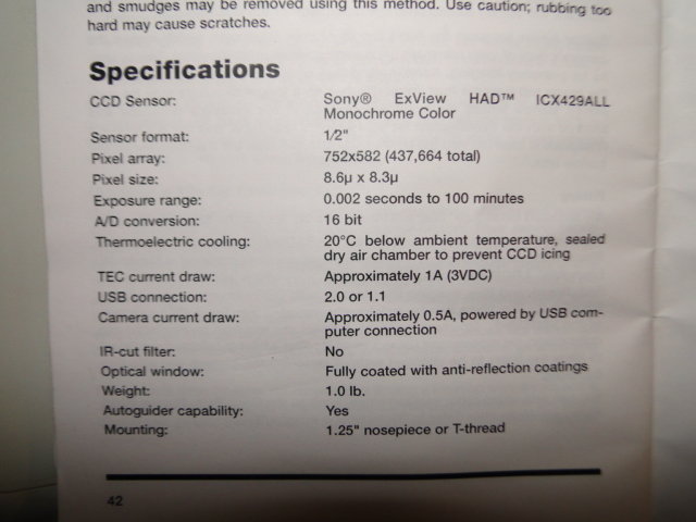 - Camera Orion Starshooter Deep Space Imager II monochrome (SSDSMI-2): capteur ICX429ALL
