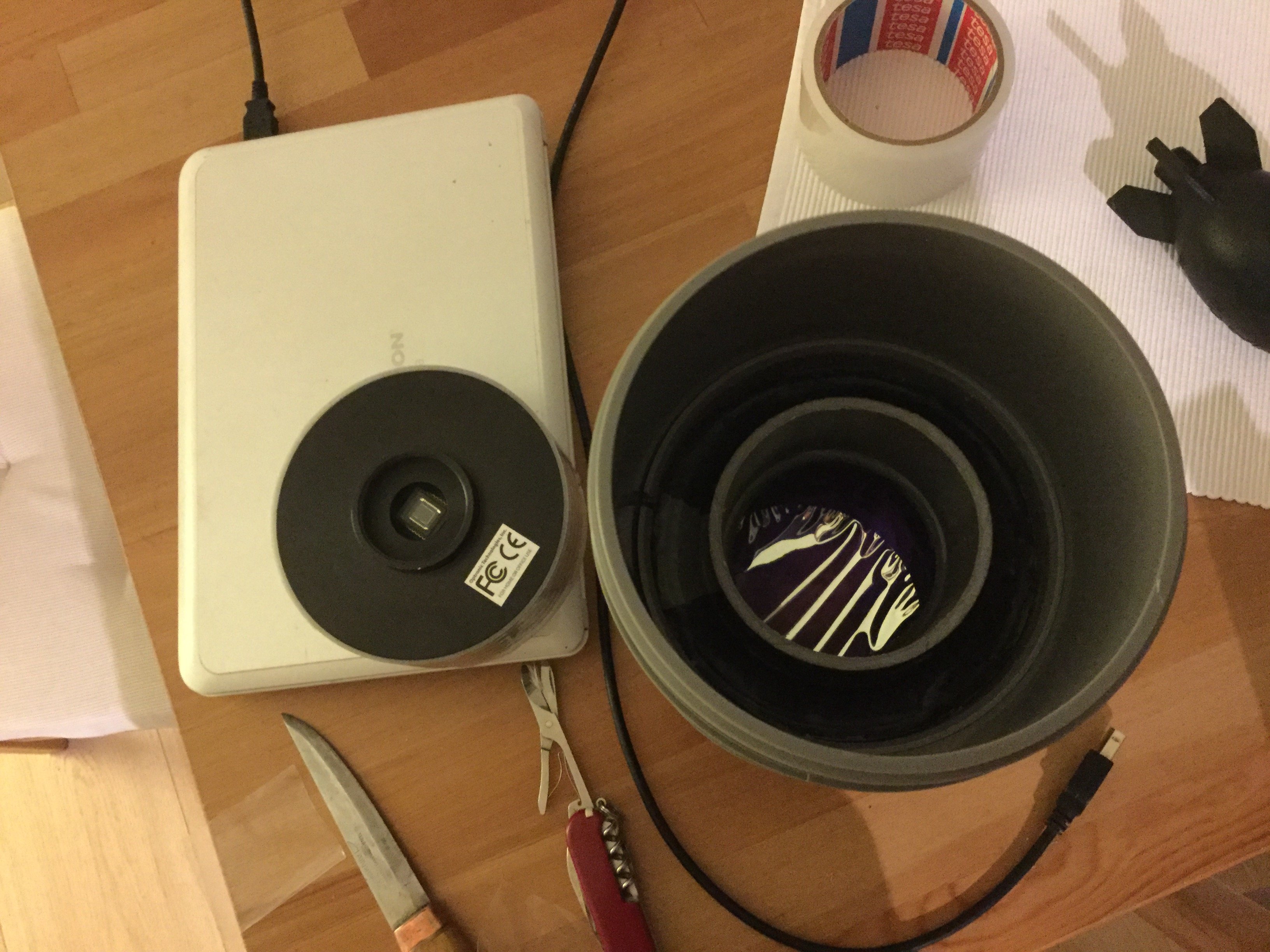 Reste a baffler proprement l interieur du fut du dispositif avec un papier ou velour bien noir, et installer l ensemble proprement sur un trepied dedie...