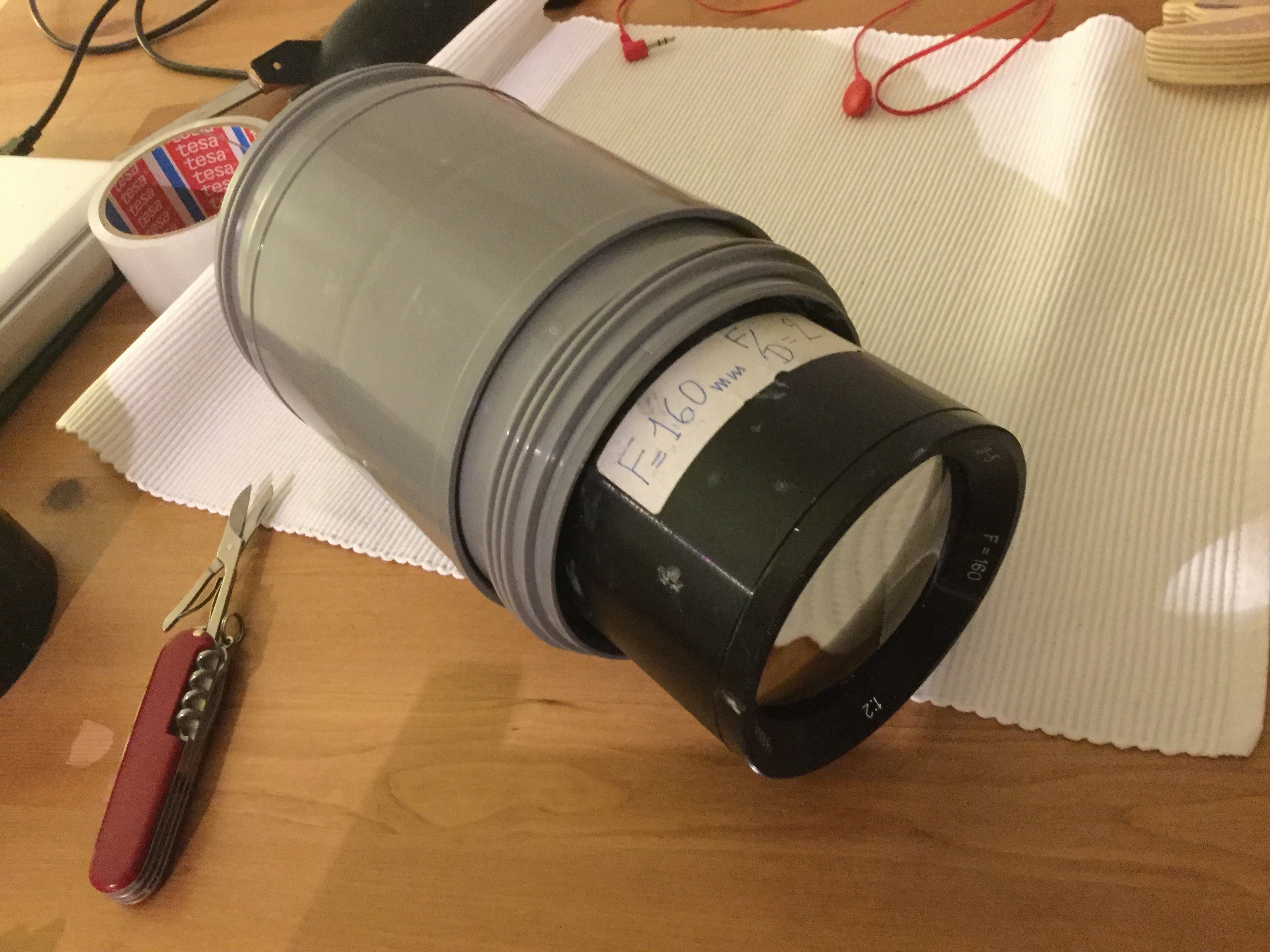 Et quelques photos du bouzin rapidement monte a l'arrache sur un trepied deja bien occupe... et du montage...
