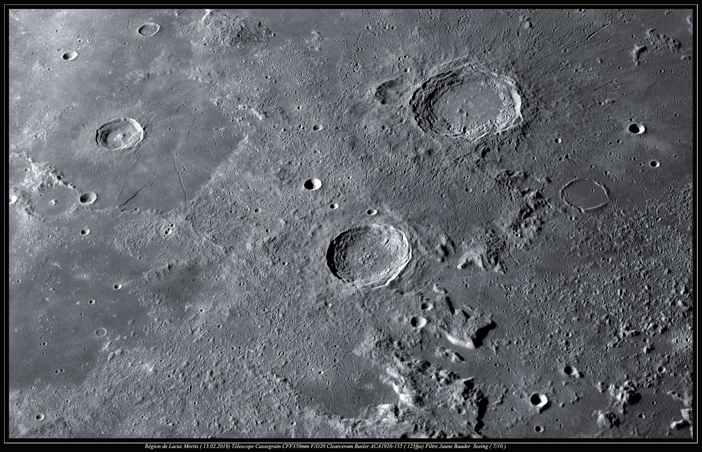 la Lune en HR du 13 et 15 Février , Caegrain CFF350 F/D20 Clearceram , Bon seeing